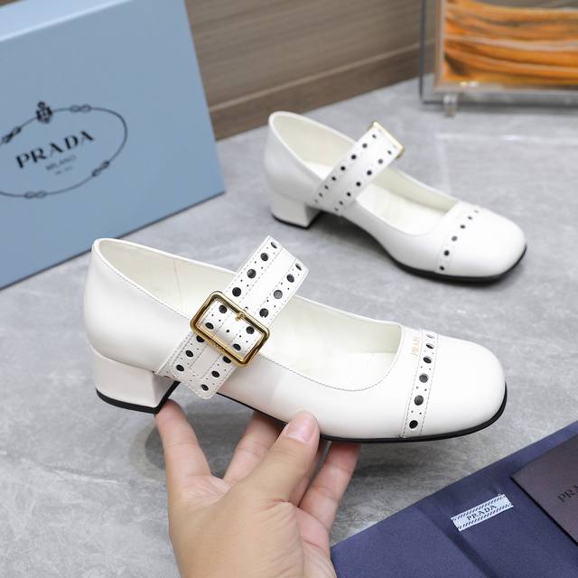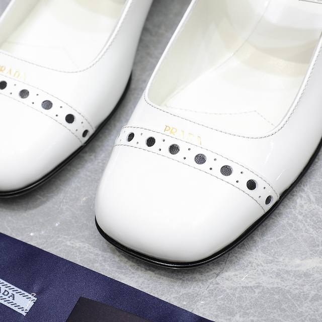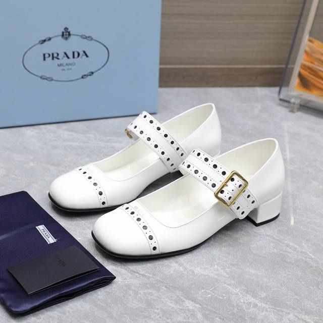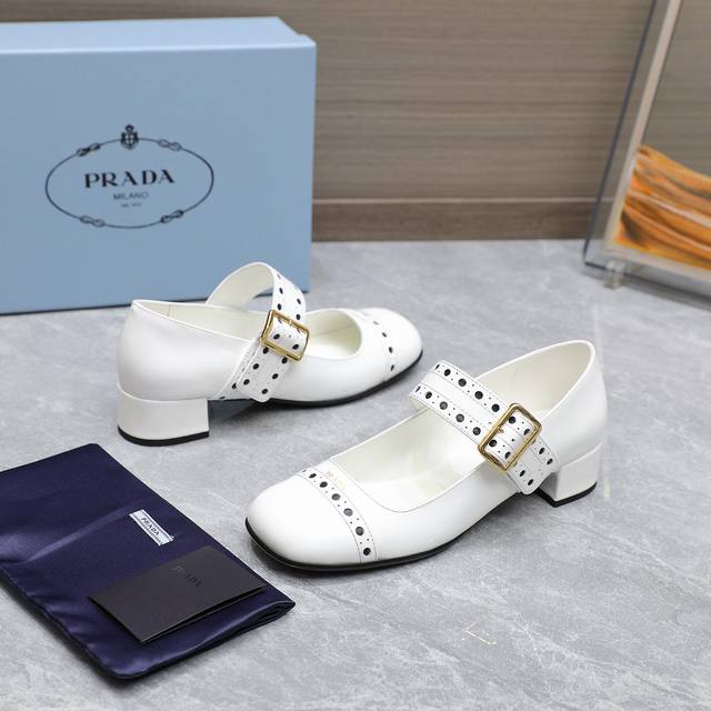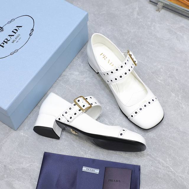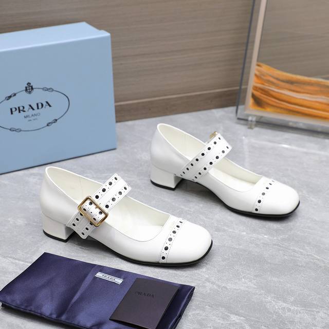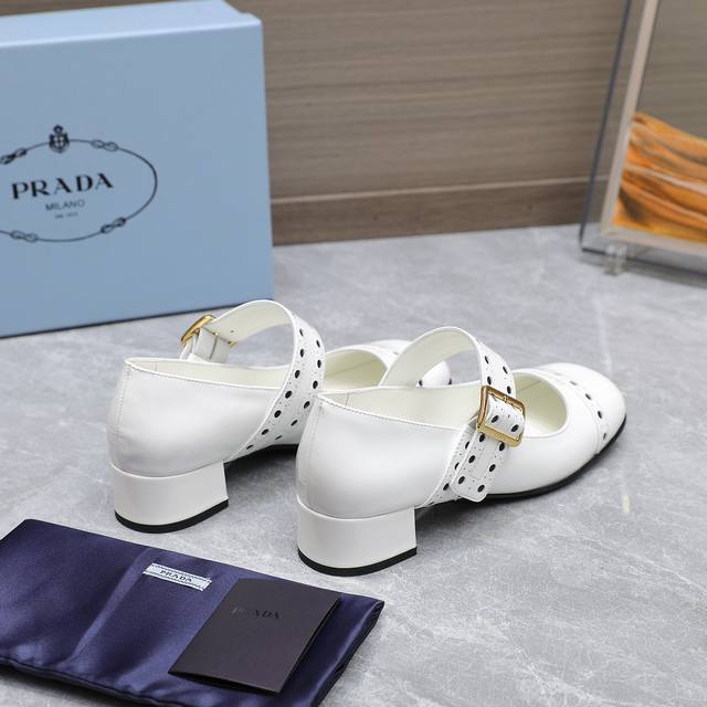 Prad*普拉达 25年早春新款粗跟单鞋女鞋圆头蝴蝶结玛丽珍