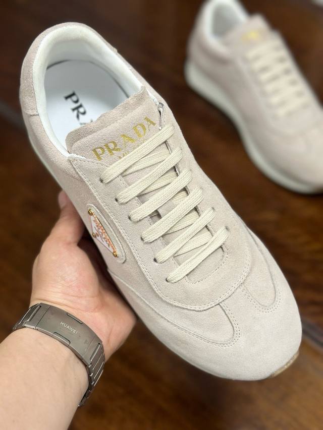 / Prad*普拉达2024春夏新品男士高端运动鞋,这款运动鞋休闲百搭,选用进口牛皮打造,进口羊皮内里,轻质发泡大底,脚感非常舒适,运用柔和简洁的线条勾勒出运动风廓