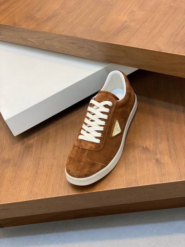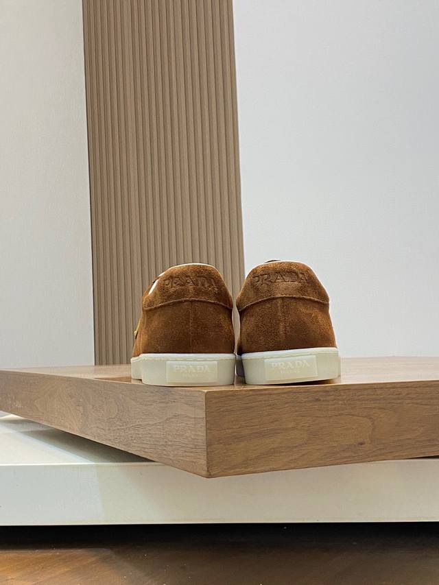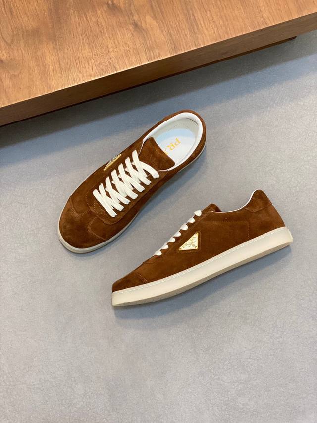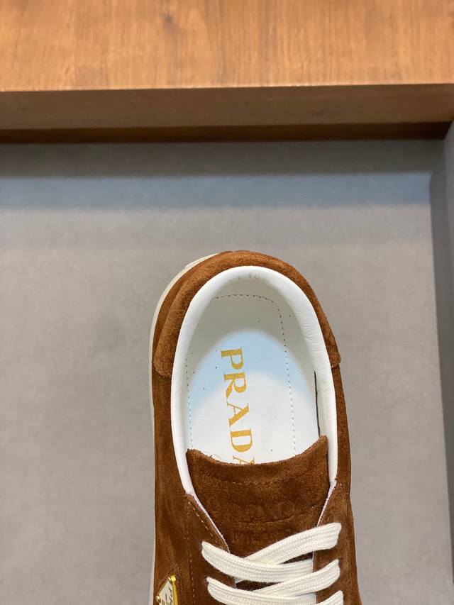 PRAD* 普拉达:高版本。休闲款。鞋面采用意原版牛皮 凸显高端 贵气 档次 做工考究 原版牛皮内里 。牛皮垫脚。鞋底:原厂特供原版大底, 实物拍摄。