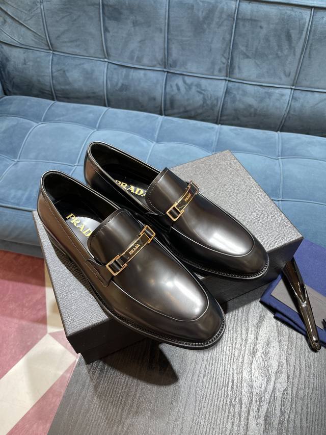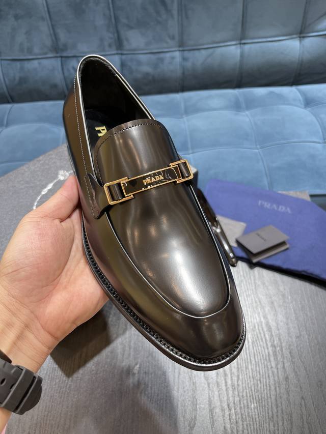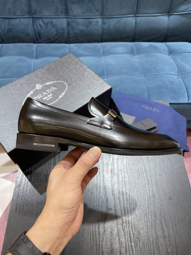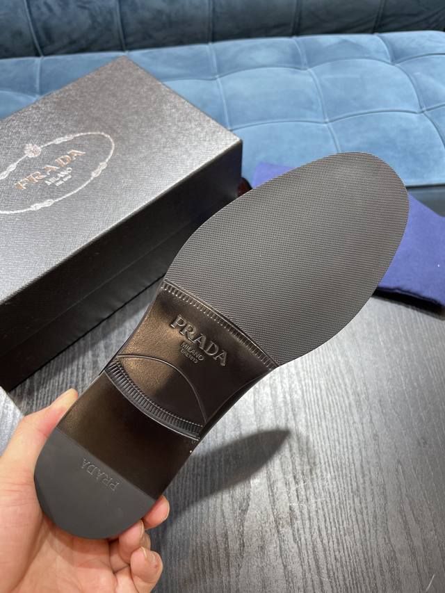 工厂P价 Prada普拉达 男鞋专柜爆款,官网同步,高品质出货原版牛皮拼+牛皮内里,11复刻 ,原厂原版底,38-45 45定做不退换