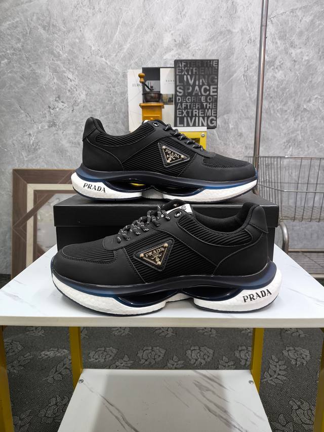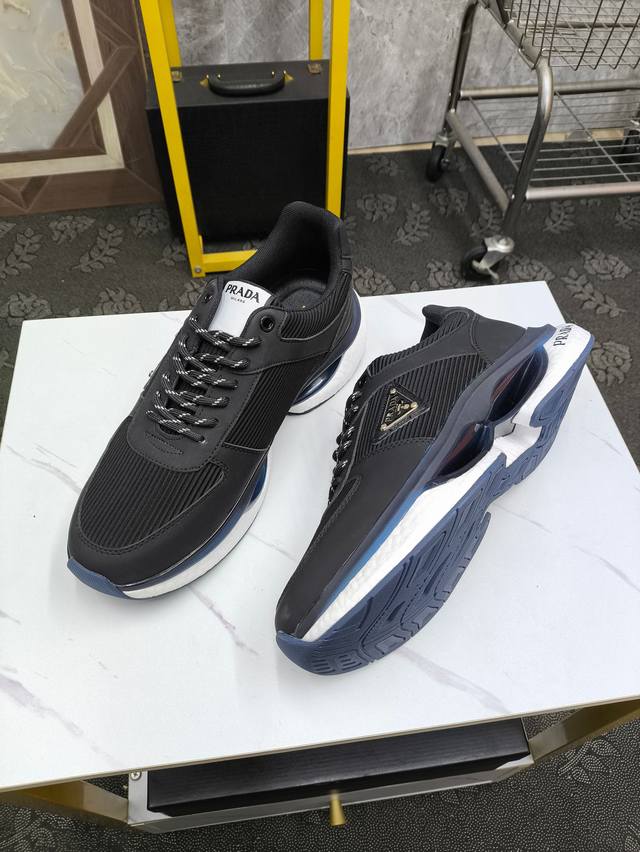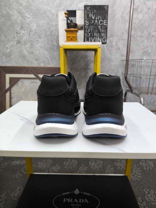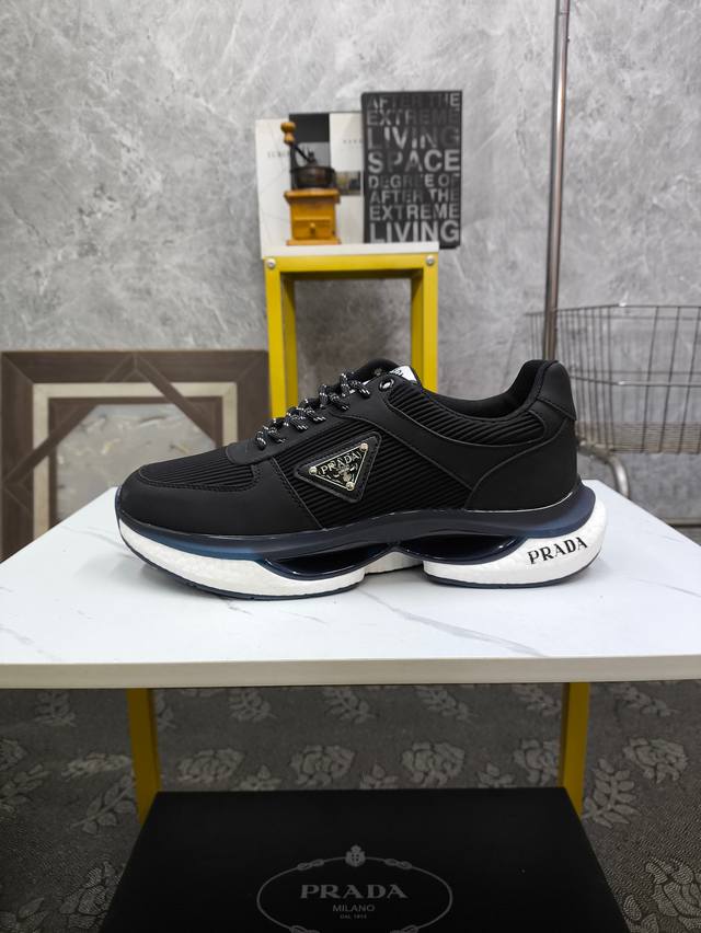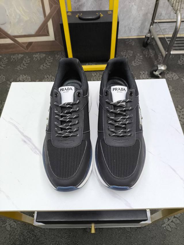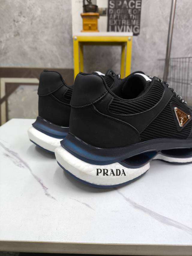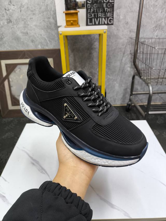 工厂价 Prad* 普拉达 新款男士厚底皮革运动休闲鞋...