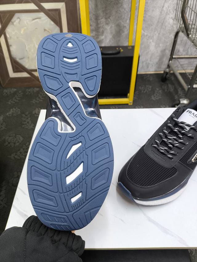 跑量款pp 情侣款普拉达 Prada 新款男士休闲运动鞋,高端品质 Tw定制双层透气网布进口头层小牛镜面漆皮 鞋垫是小牛皮 冲孔设计...
