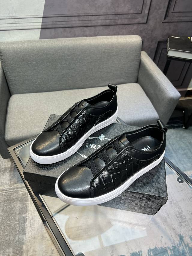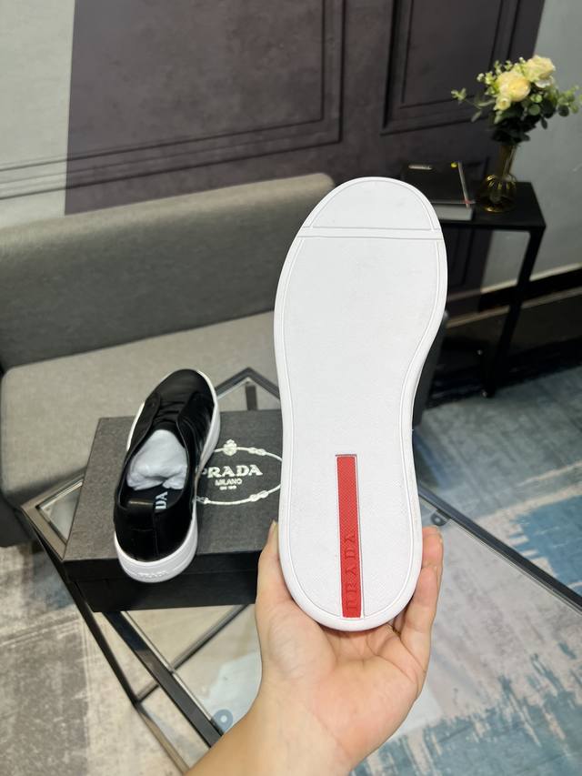 / PRADA普拉达 男鞋官网最新款上市了1:1复制,香港专柜同步,走秀同台;全部采用小牛皮进口牛皮垫脚橡胶大底原版1:1防滑耐磨;着脚舒适、款式耐看,做工精细,配