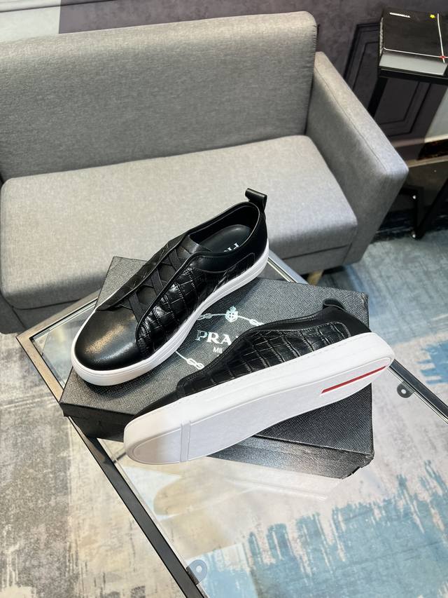 工厂价 PRADA普拉达 男鞋专柜爆款,官网同步,1高品质出货原版牛皮拼接网面+牛皮内里,11复刻 ,原厂原版底,38-45 45定做不退换