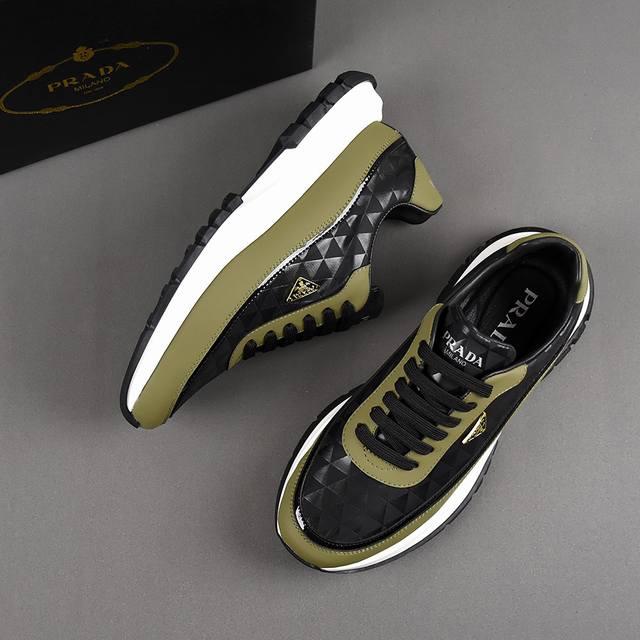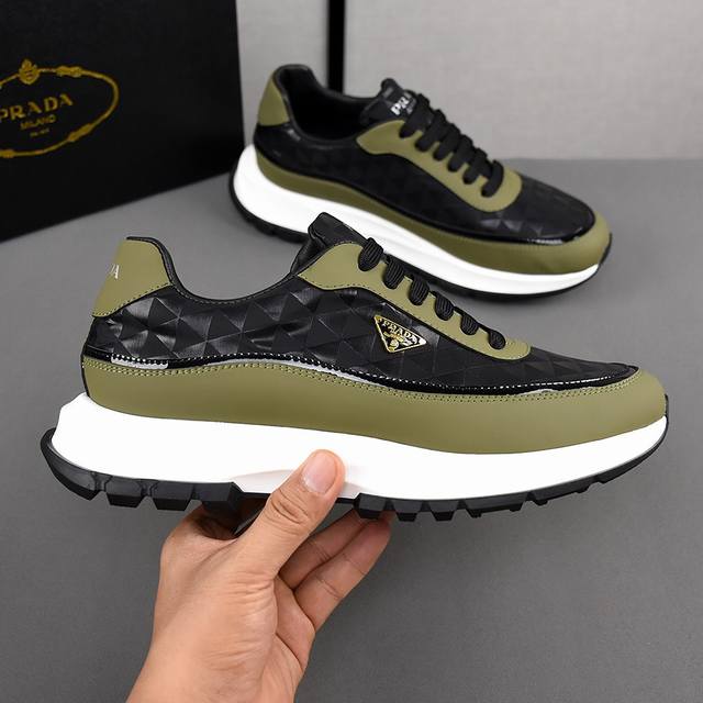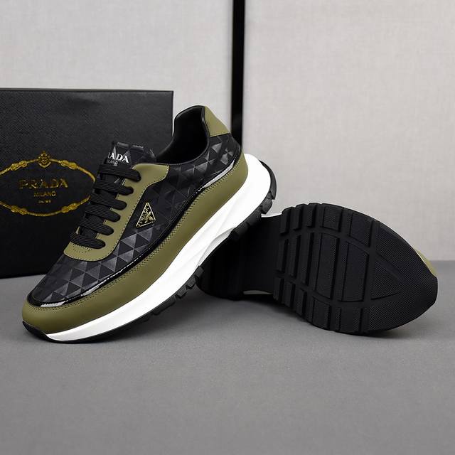 Prada-普拉达 精品系列。鞋面采用头层牛皮,羊皮内里,超轻软弹pu大底。男款38-44 45定做 按平时穿着码数选择即可 。
