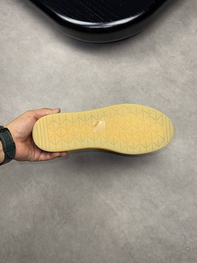 -鞋面:反绒小牛皮、鞋身车缝品牌金属logo扣件