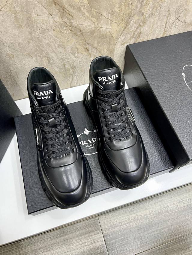 Prada 普拉达 男士系带中邦皮革运动鞋