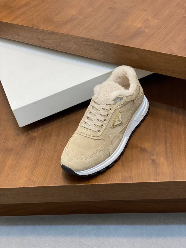 莞产顶级猛货 进口纳帕牛皮鞋面凸起层次设计感 轻盈透气 柔软舒适 小牛皮真皮包边装饰 颇具与众不同的运动风范 真皮鞋舌配经典prada字母红色胶标徽章 尽显品牌格调 透明气垫中底配轻质胎纹橡胶大底 轻盈且增高约4Cm 内里毛里 脚感极佳 配原包装38-44 45订做