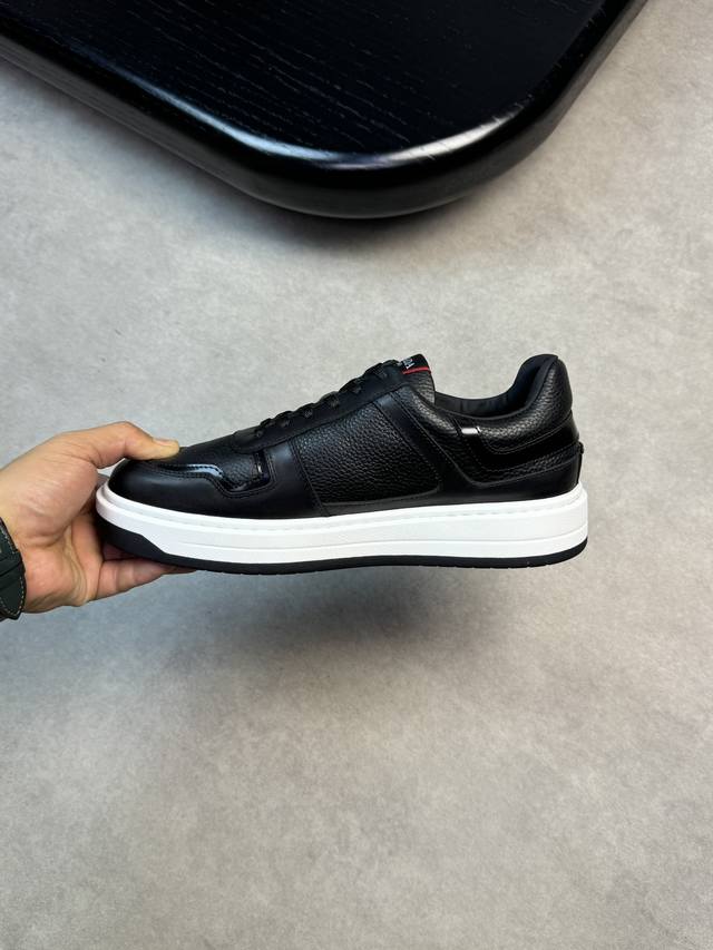 -鞋面:纳帕小牛皮、摔纹小牛皮、鞋身品牌金属扣件