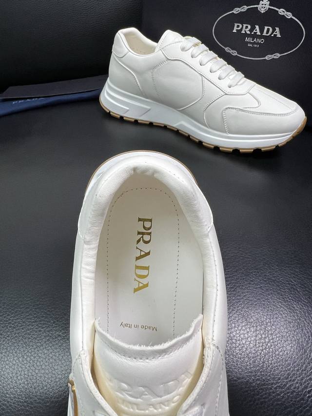 prada 普拉达 秋冬季皮里男士系带运动鞋 莞产顶级猛货 进口纳帕牛皮鞋面凸起层次设计感 轻盈透气 柔软舒适...