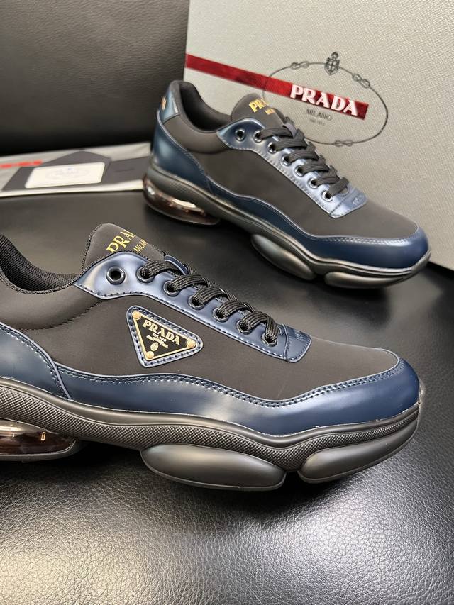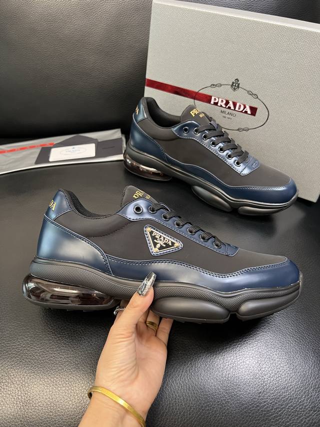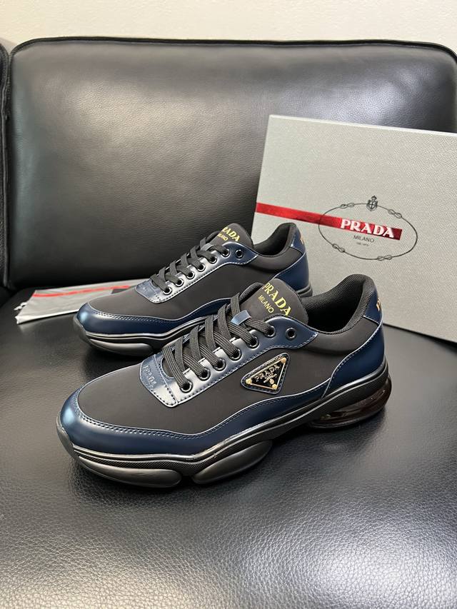 出厂价 Prada普拉达 男鞋专柜爆款, 原版牛皮面+ 牛皮垫脚+网布内里, 原厂原版底,38-45 45定做不退换