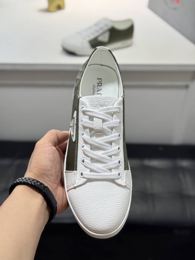 普拉达~男鞋官网经典最新款上市了1:1复制,香港专柜同步,走秀同台;全部采用小牛皮羊皮内里、橡胶大底原版1:1防滑耐磨;着脚舒适、款式耐看,做工精细,配以简洁利落的鞋楦,彰显男人的果敢和硬朗