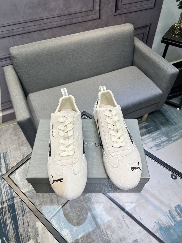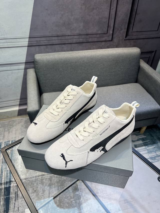 情侣款彪马联名巴黎世家新款 德训鞋居然那么好看!今年第一双鞋被这双巴黎世家联名彪马圈粉了!德训鞋脚感真的很舒服五个配色都很绝,很纠结怎么选了,真的很帅很有高级感!Size:35-45 女40,男45定做不退换