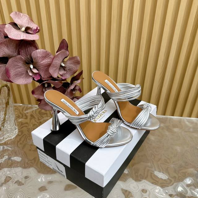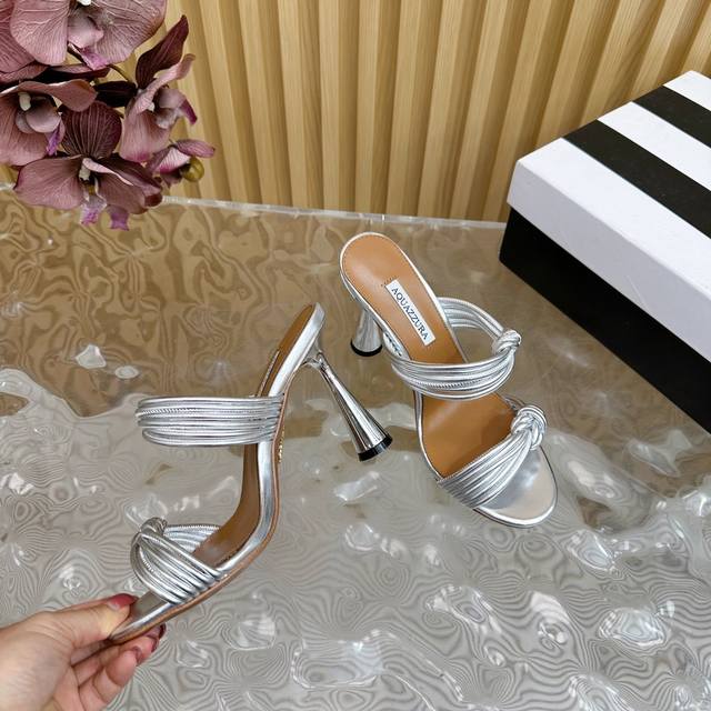 aquazzura 2024 新款顶级版本 菠萝女士扭花编织拖鞋 高跟凉鞋原版1比1开模鞋跟!闪耀光芒