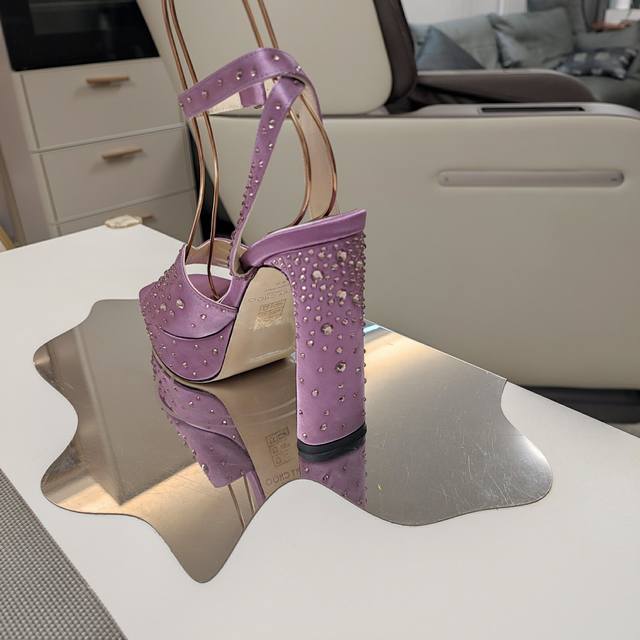 全新款五金金属装饰扣,搭配后包圈带与露趾方头鞋形,衬托光板的性感款式,钻面款采用施华洛世奇水晶制作而成,装饰于整个鞋体处,个性凉鞋系,99% 的独特个体,添上1%的出众灵感,满分街拍,让你分分秒秒出大片。点点闪耀,璀璨炫光,浪漫的写真就绪,照亮你的好心情。鞋跟都是手工烫钻,原版定制水晶钻密密镶嵌,织出星光幕布,晶莹耀目,上脚拍图
