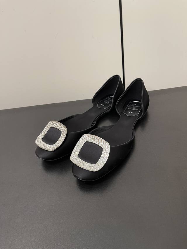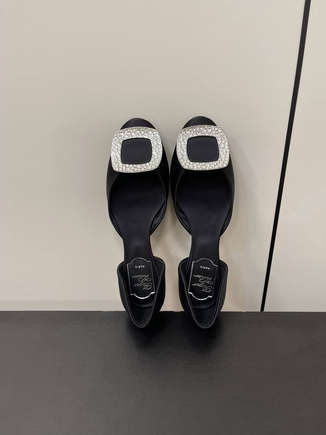 代购级Roger Vivie* 25Ss 春夏 钻扣尖头鞋 春夏钻扣系列真丝单鞋 婚礼 晚会最合适不过施华洛世奇钻扣,细节一比一打造 鞋面...