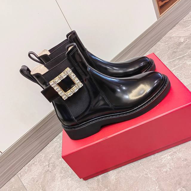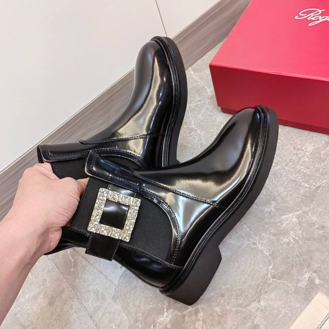 Rv这一季的秋冬款真的很好看 简约鞋型搭配厚底的设计搭配新款钻扣真的没人能拒绝!钻扣我们是用的真正施华洛世奇钻 鞋面选用进口牛皮 内里垫脚全牛皮 大底是原版Tu