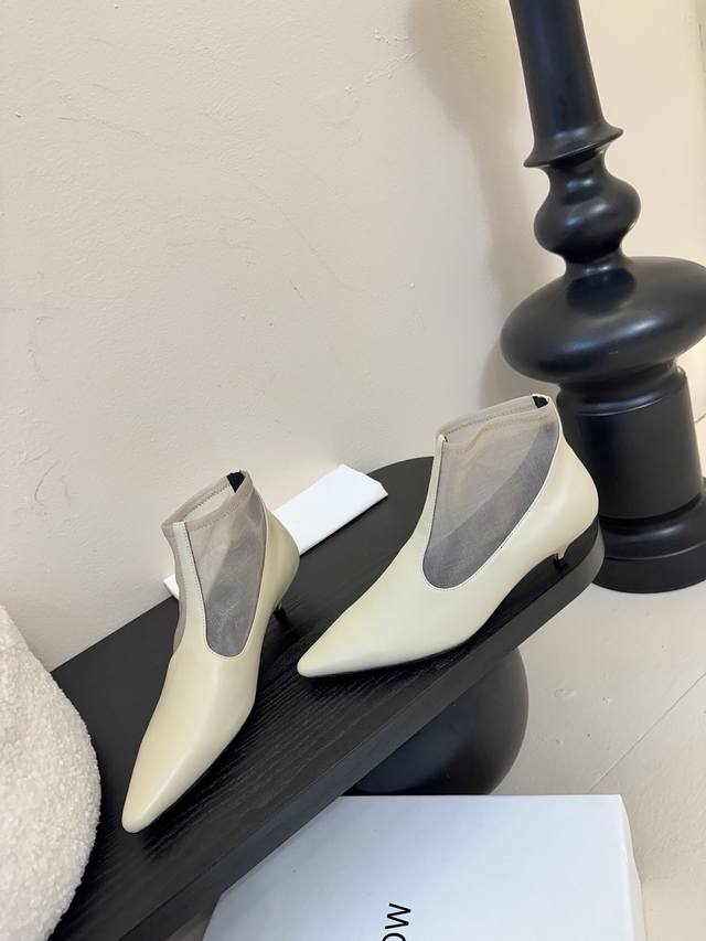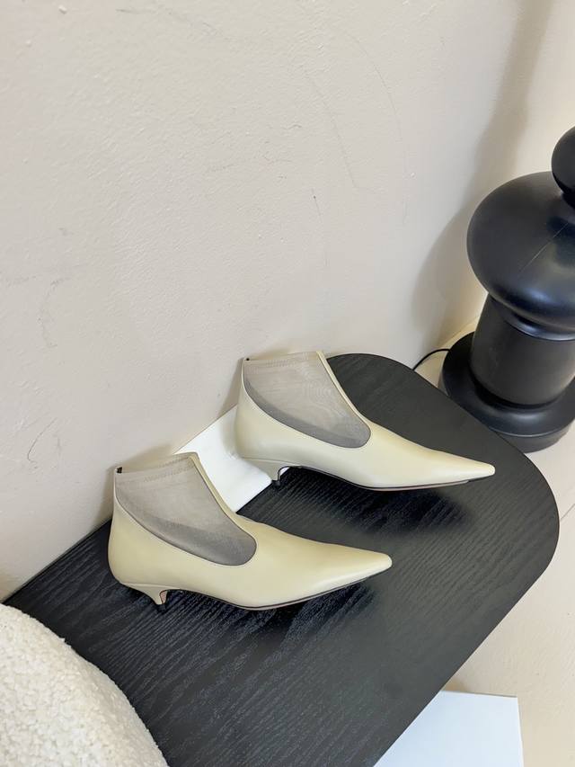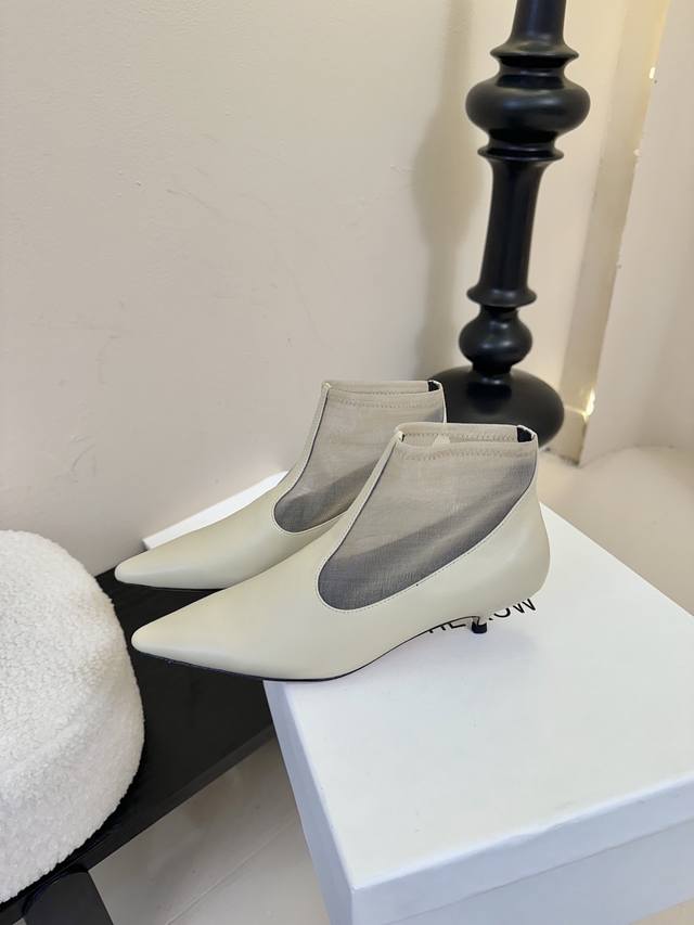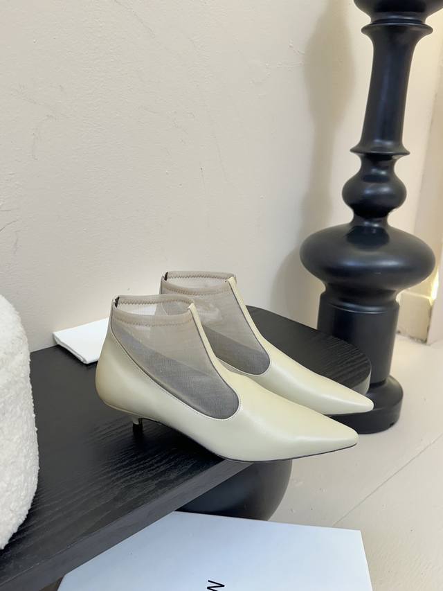 The Row 2025秋冬新品 网纱尖头高跟短靴