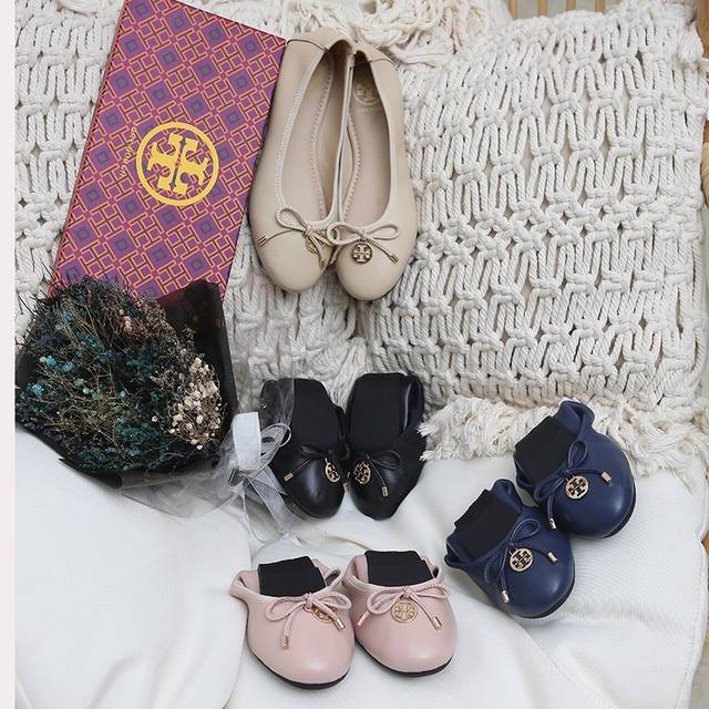 Tory Burch托里伯奇经典芭蕾舞鞋Tb 圆头蛋卷鞋时尚百搭 居家 逛街 旅行必备款 上脚超舒适还可折叠放在放包包里面料采用...