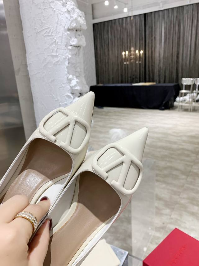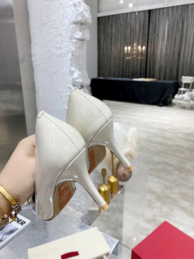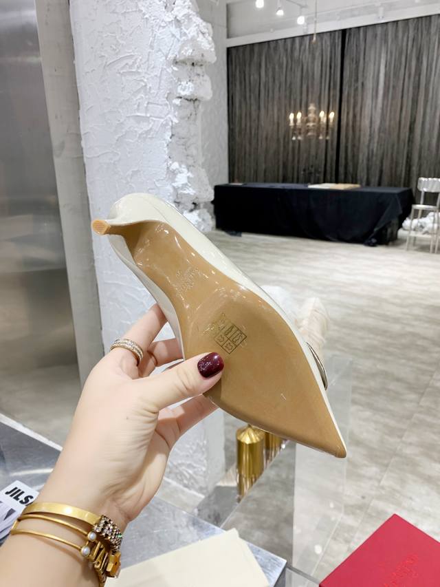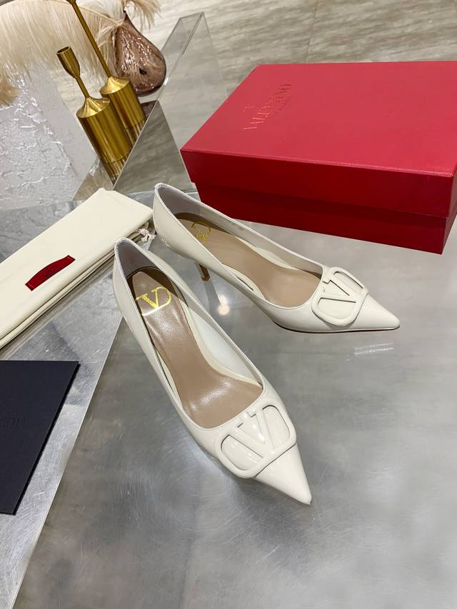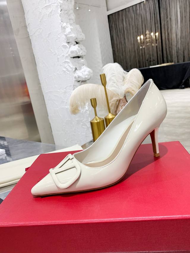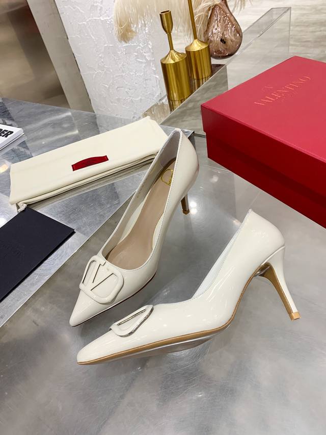 专做真皮底Valentino华伦天奴时装鞋V扣尖头单鞋 小牛漆皮高跟鞋 真皮包扣 高频焊接工艺皮质 Vlogo 配饰跟高:7.5Cm码数:35-40#
