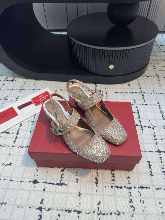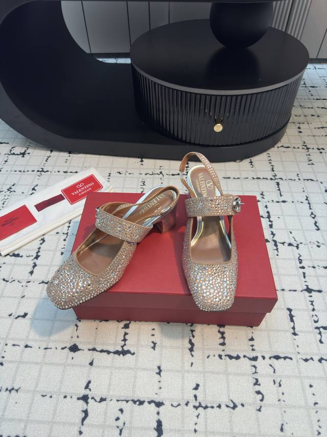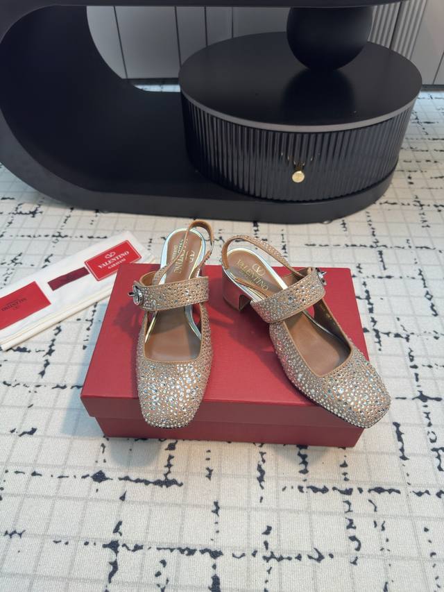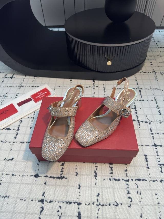 代购级别 Valentin* Garavani Vlogo Locker 24 华伦天奴烫钻玛丽珍鞋