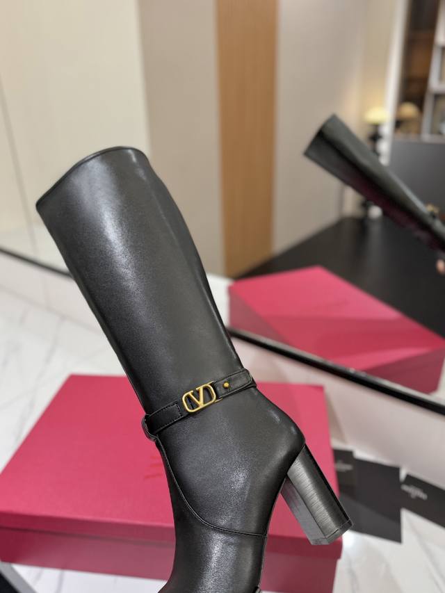 出厂价 新款华伦天奴高靴valentino Garavani Vlogo Signature 小牛皮靴 -小牛皮饰带配以复古黄铜做旧效果vlogo Signat