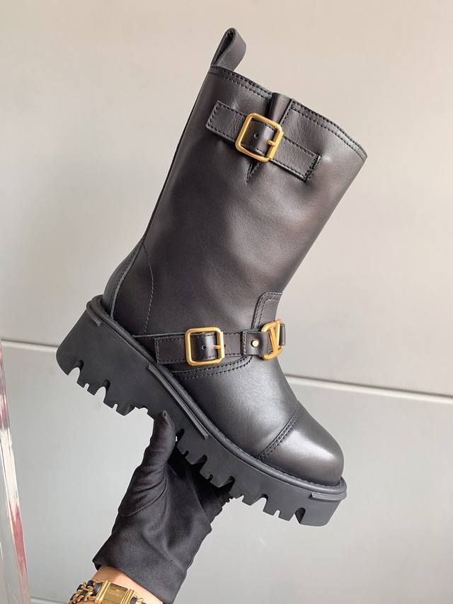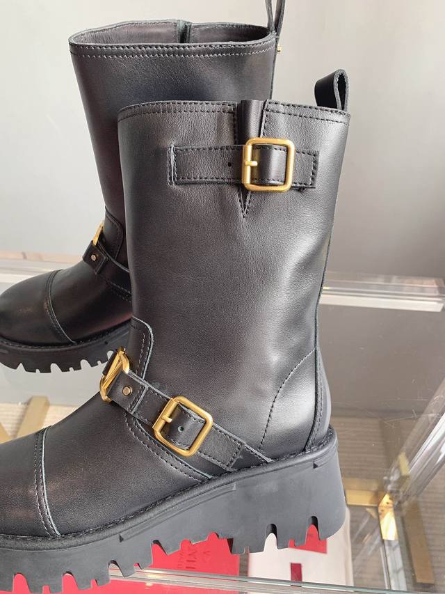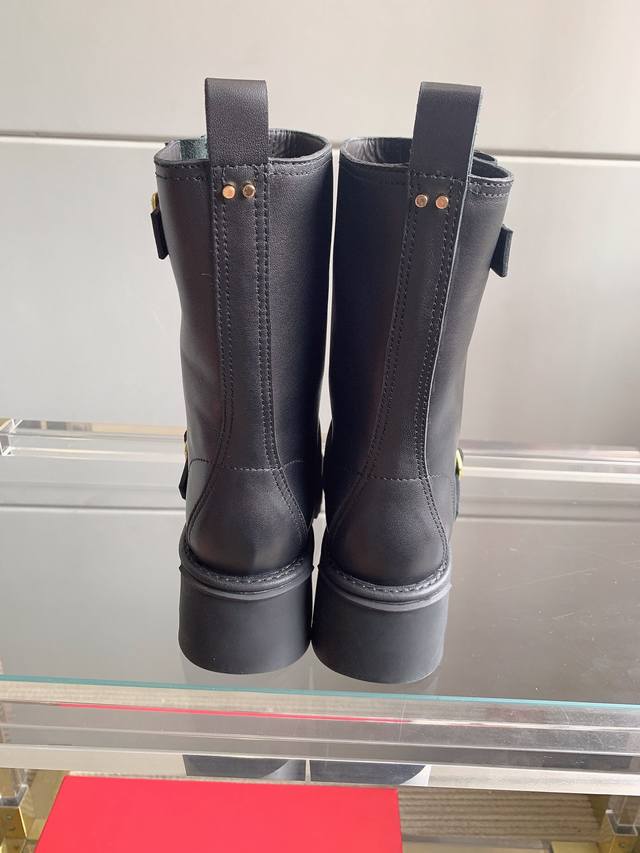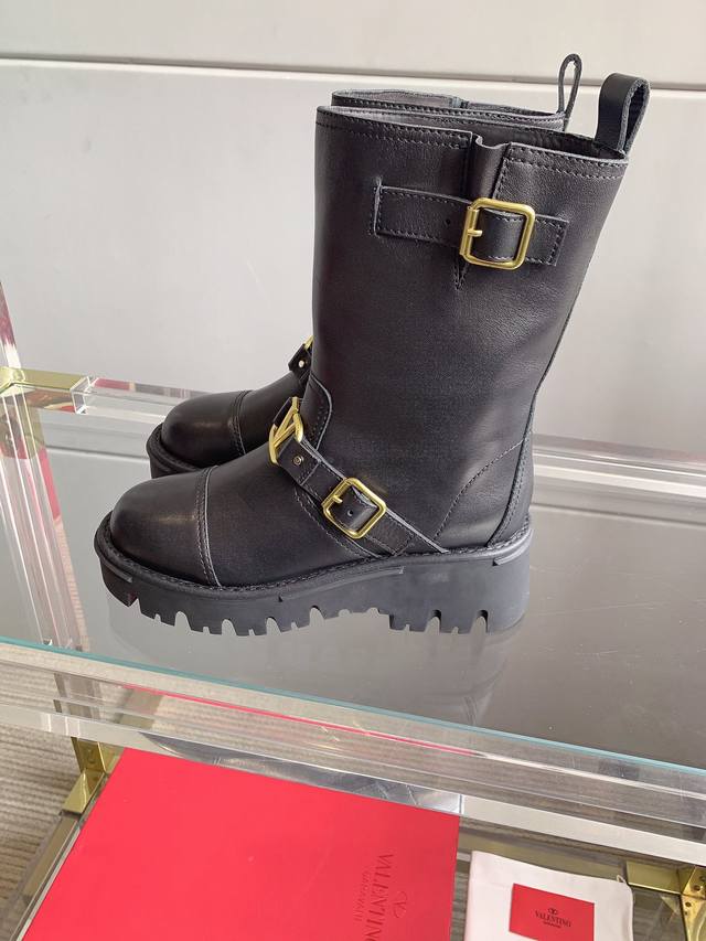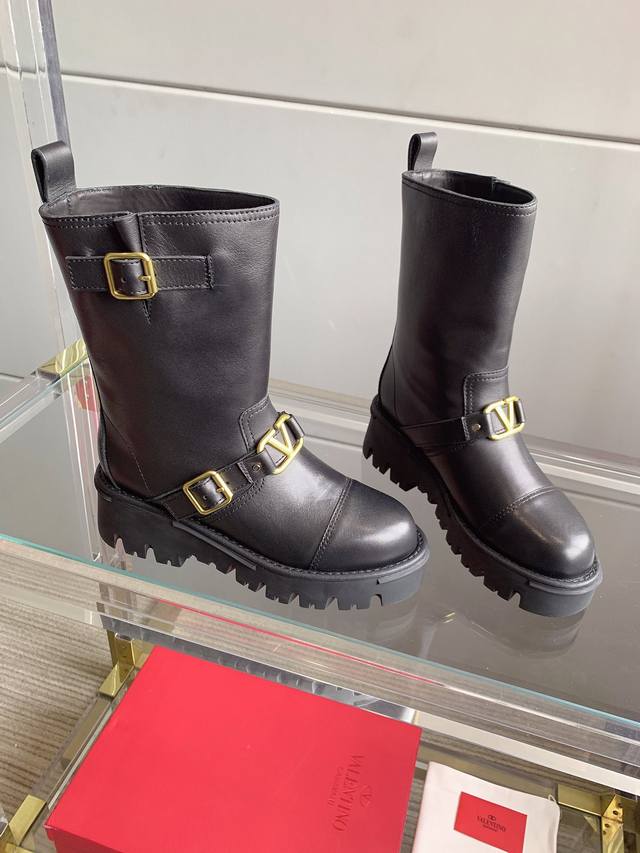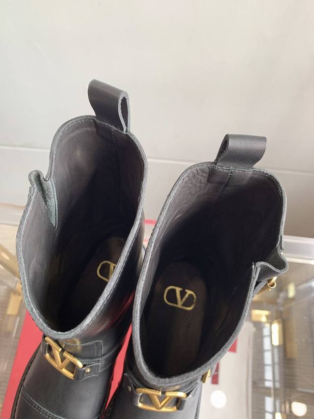 出厂价p Valentino*新款铆钉机车靴 经典V扣装饰 鞋面小牛皮 内里垫脚牛皮 尺码35-39 40定做