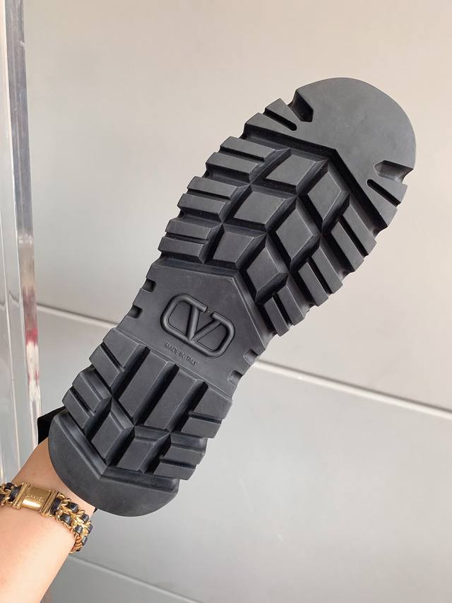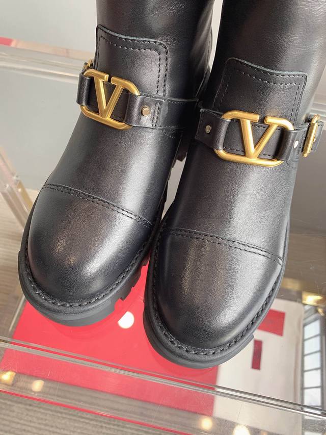 Valentino*新款铆钉机车靴 经典V扣装饰