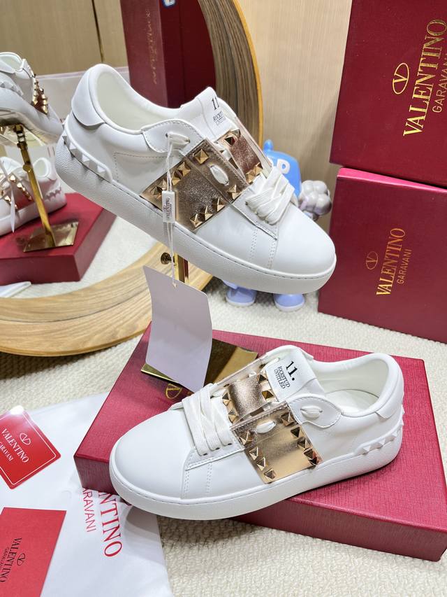 出厂:女 男300 顶级版本 Valentino华伦天奴garavani Open Disco 铆钉 厚底 休闲 运动鞋 小白鞋 原版购入开发 做货 V家经典系