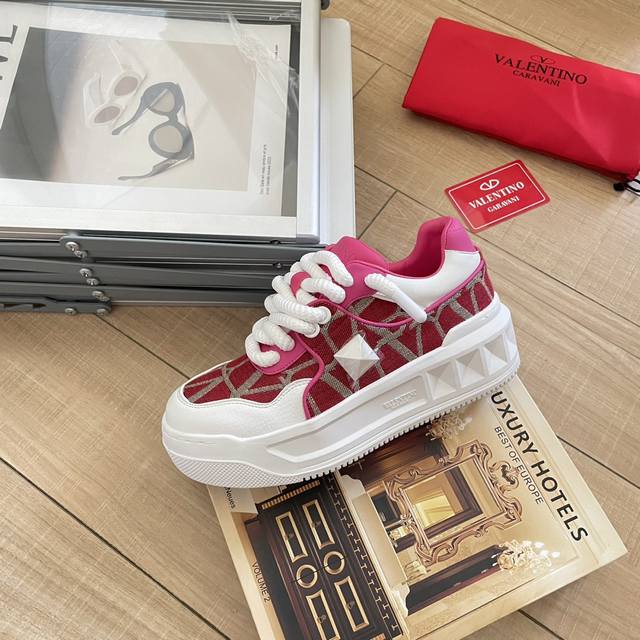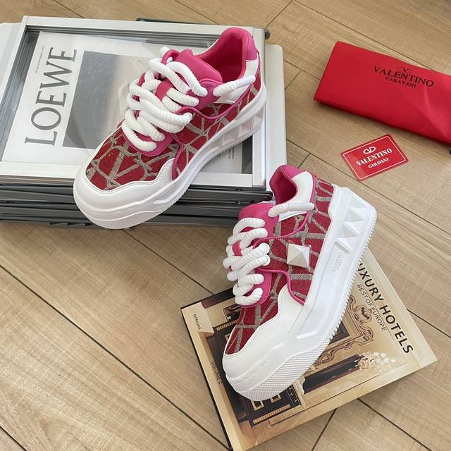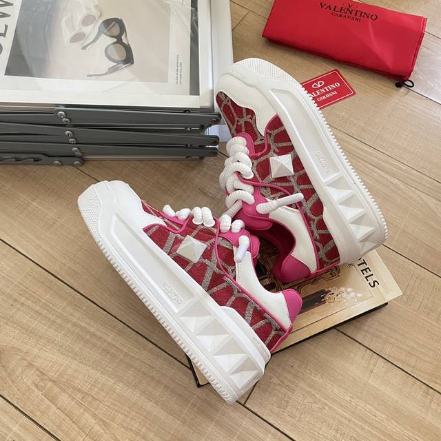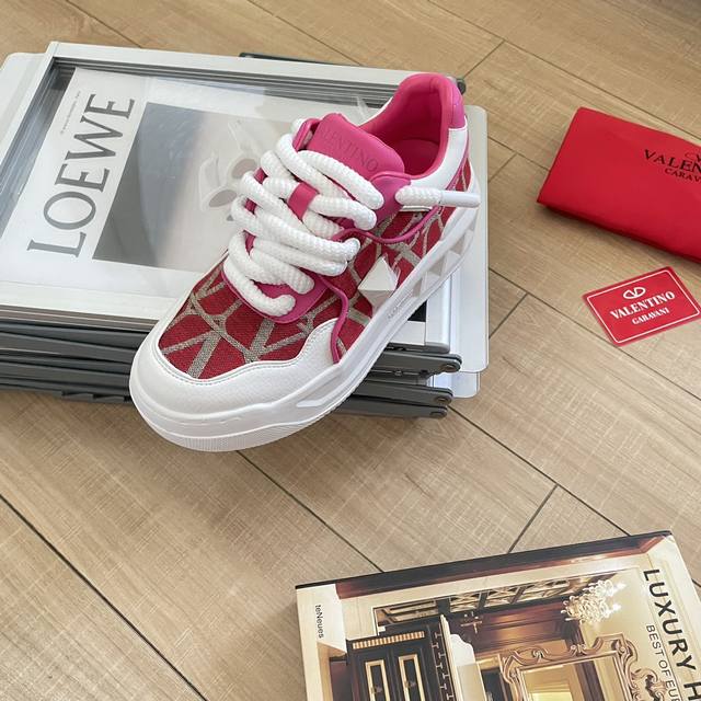 出厂: Valentino 华伦天奴新款 Vt大铆钉低帮运动鞋板鞋 半哑光工艺效果处理,超大铆钉细节,顶级印刷立体logo。 增高:5Cm 码数:35-41女款