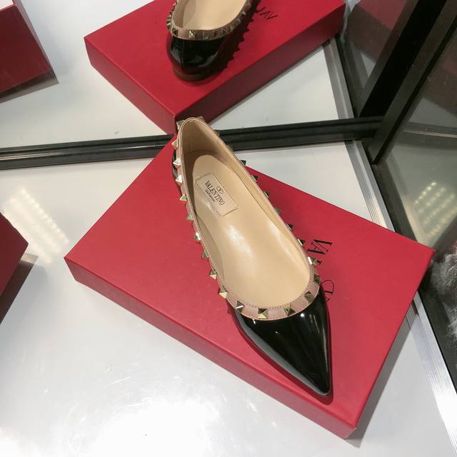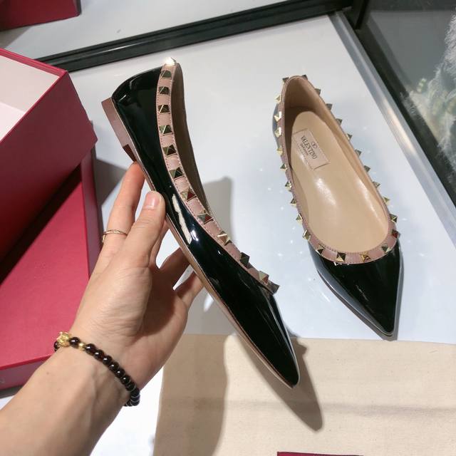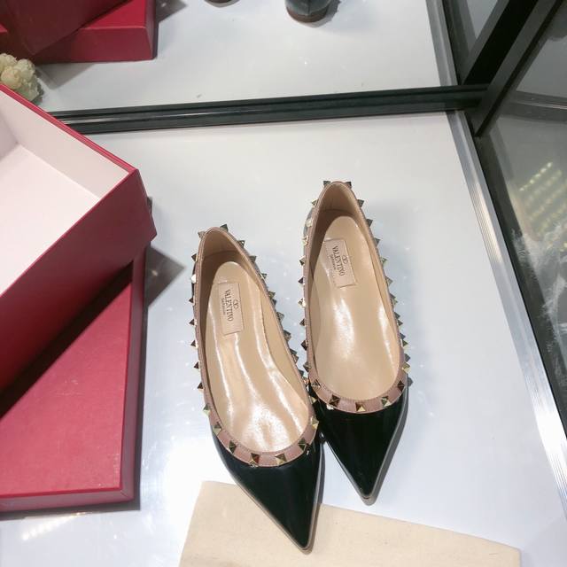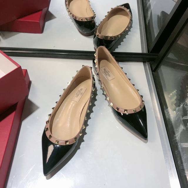 出厂: Valentino 华伦天奴经典款 铆钉尖头平底单鞋 码数:34-42