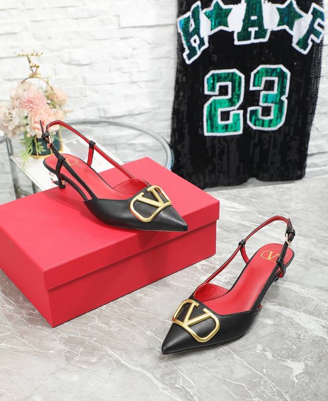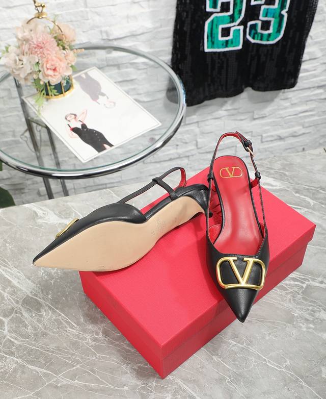 / 华伦天奴中跟4厘米,Valentino私家金属logo系列后空凉鞋,尖头鞋简直是脚胖脚宽救星显瘦显脚长,不喜欢经典款两带太高的,选这款绝对合适啦,非常的好穿凉鞋