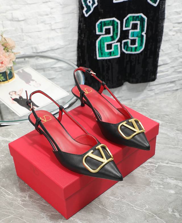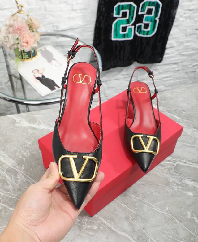 华伦天奴中跟4厘米,Valentino私家金属logo系列后空凉鞋,尖头鞋简直是脚胖脚宽救星显瘦显脚长,不喜欢经典款两带太高的,选这款绝对合适啦,非常的好穿凉鞋款式穿着更方便
