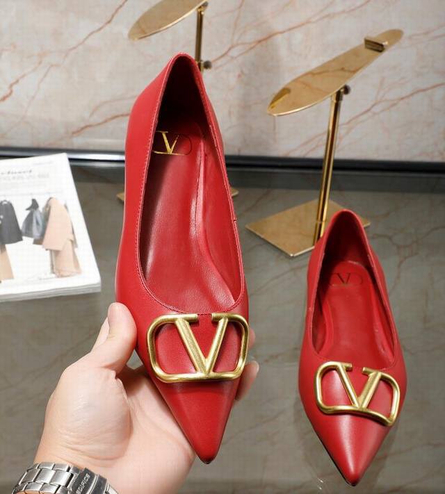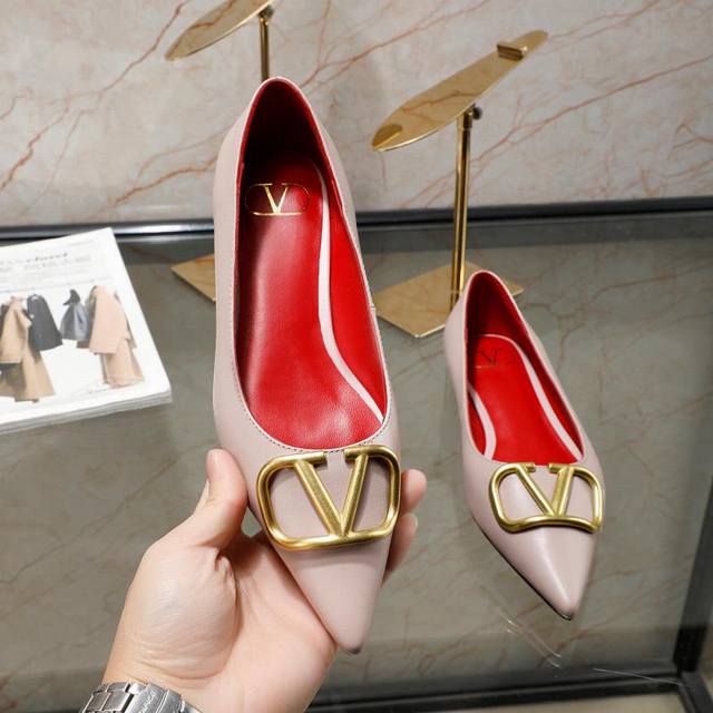 华伦天奴春季单鞋,大v字母扣.实拍图,码数35-40,平跟高2厘米,面料全牛皮,内羊皮, 元,橡胶底,黑色,米白色,红色,裸色,共4色
