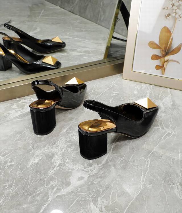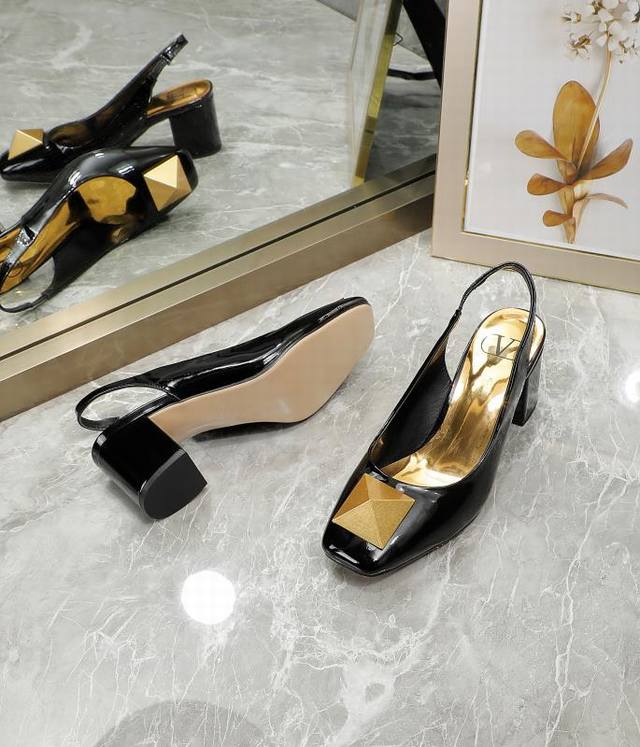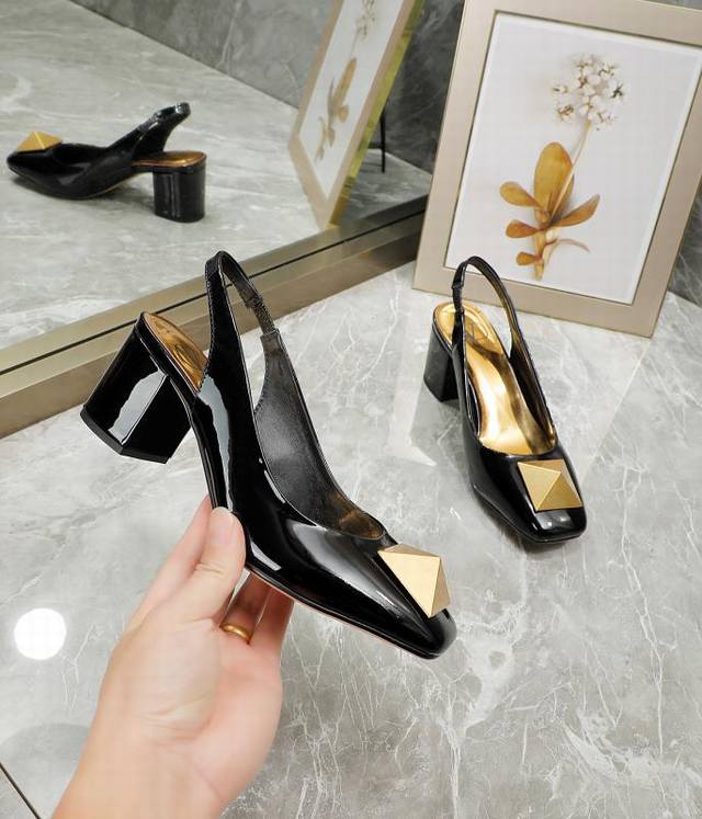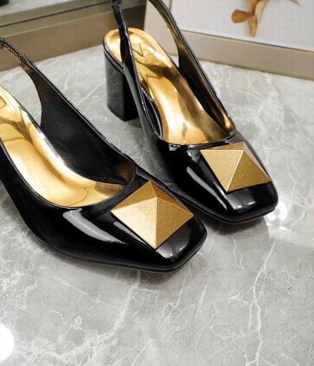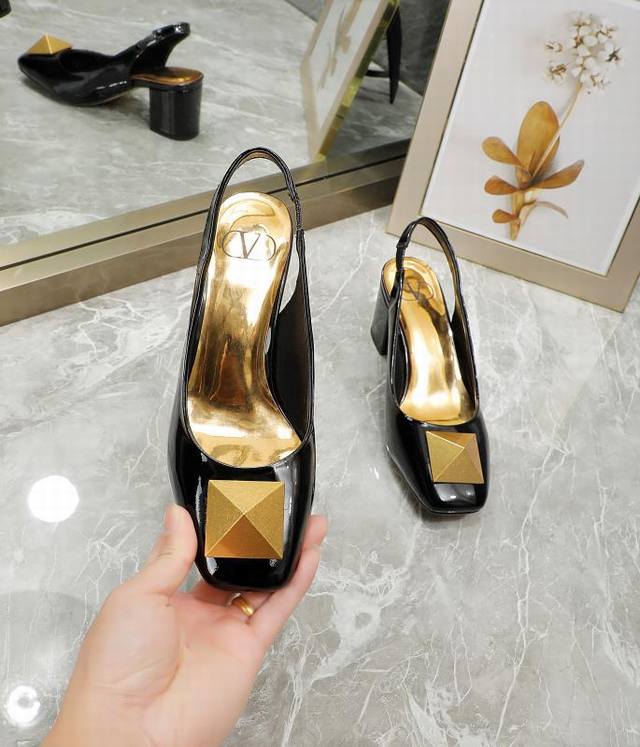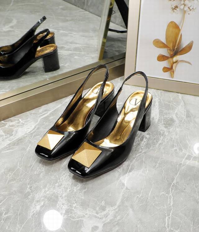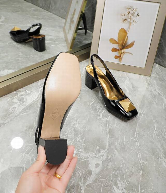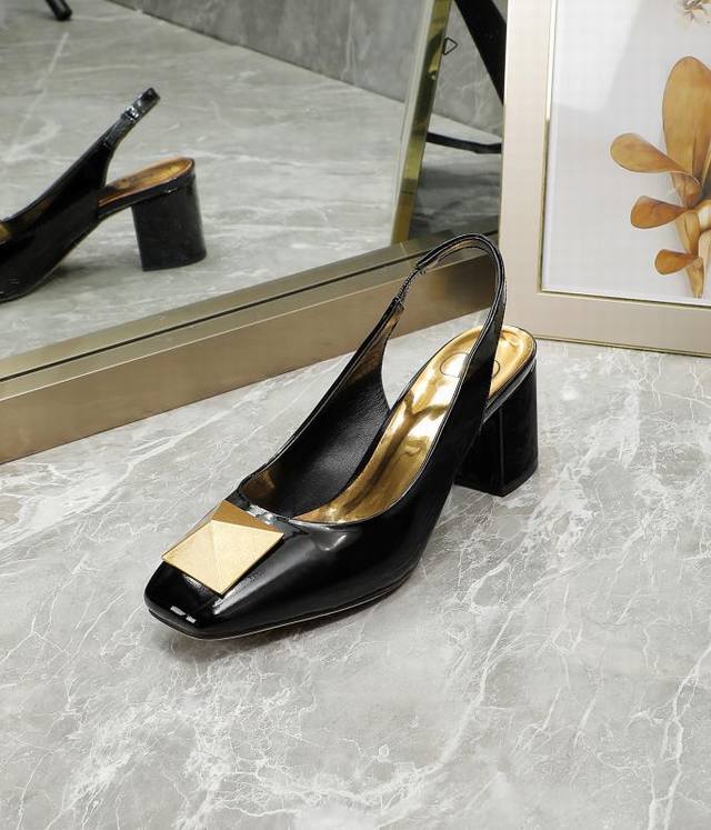 华伦天奴 金属大方扣,牛漆皮系列,内里羊皮,高跟5.5厘米,35-40码,41-42订做,黑色, 米,