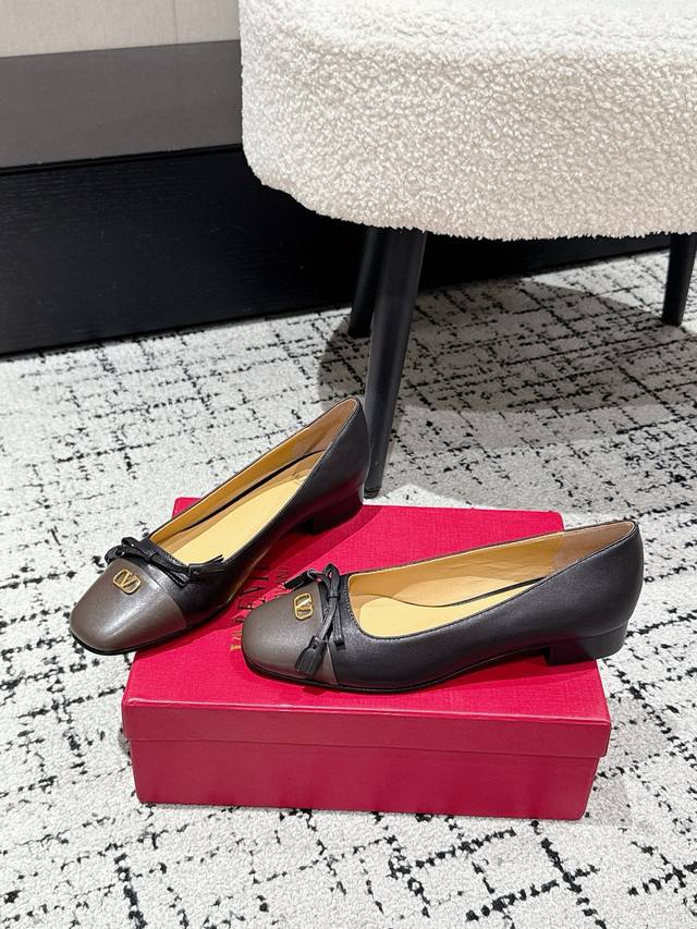 华伦天奴25 秋冬新款蝴蝶结拼色单鞋