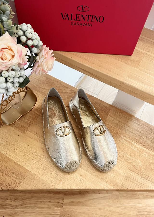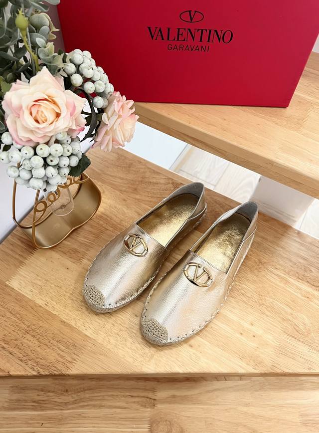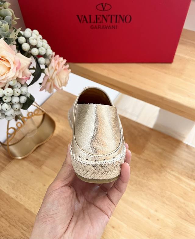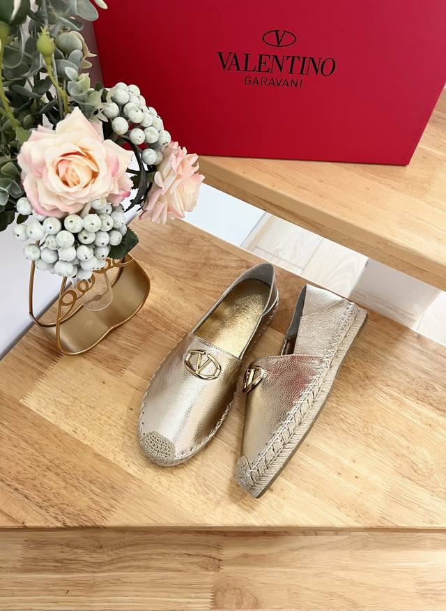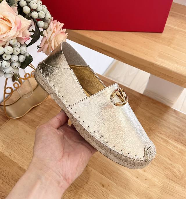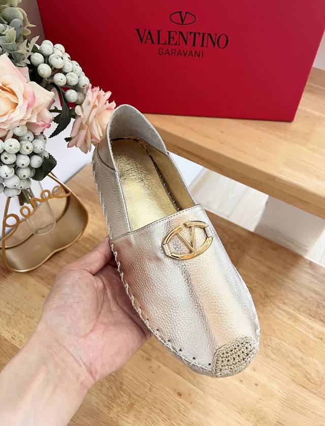 女款 男款Valentino Garavani 华伦天奴 拉帕荔枝纹牛皮v扣新款渔夫鞋- 大v金扣装饰- 牛皮-跟高2Cm- 橡胶大底- 意大利制造-36-45