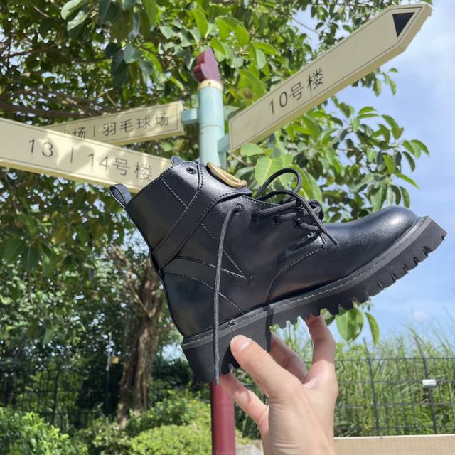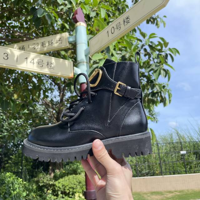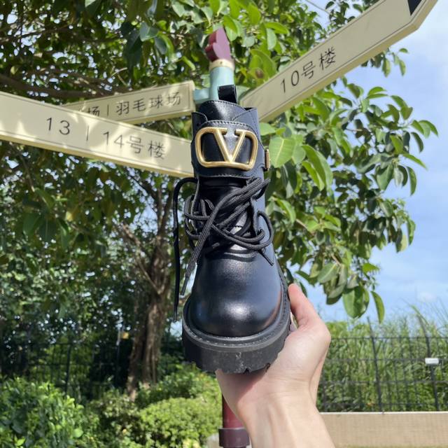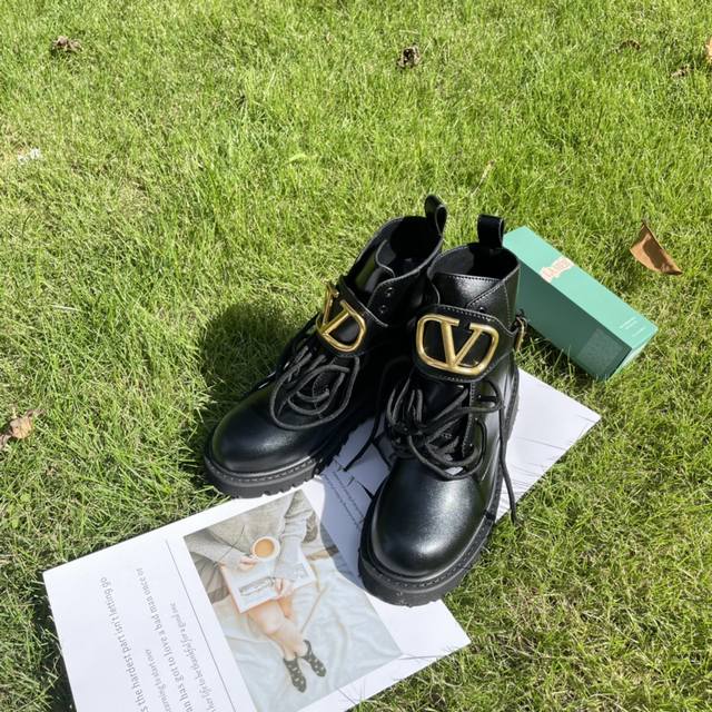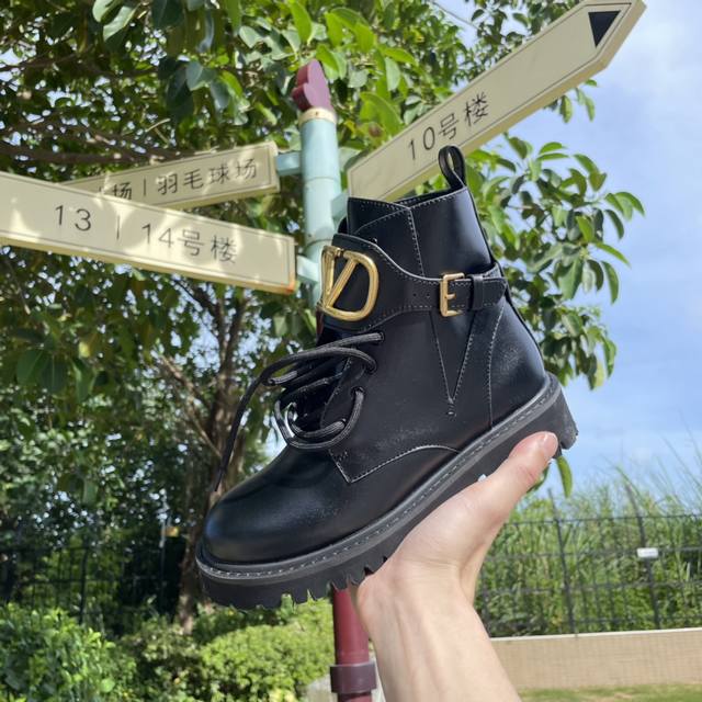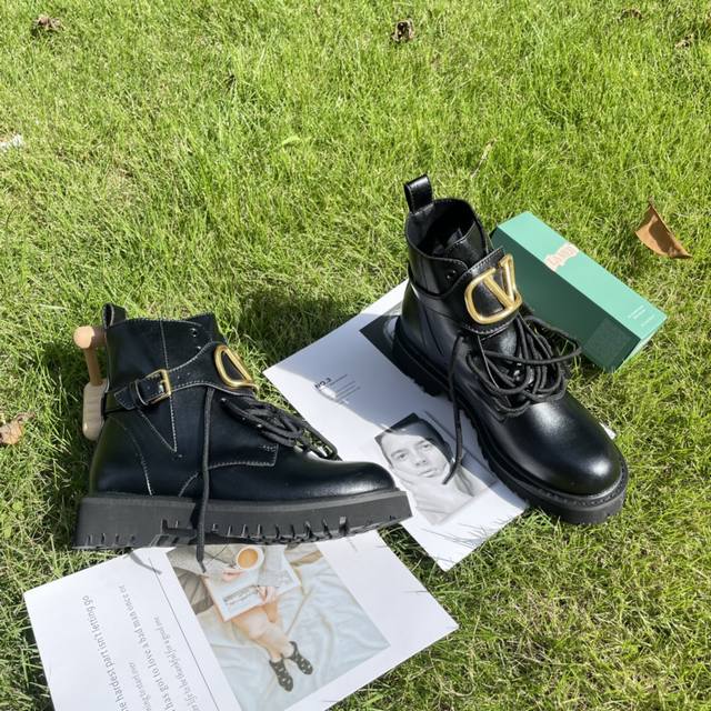 橙子出厂价 Valentino 华伦天奴 秋冬新款 金属v扣系带短靴 马丁靴 小红书秋冬热搜短靴 纯欲穿搭 码数:35-40