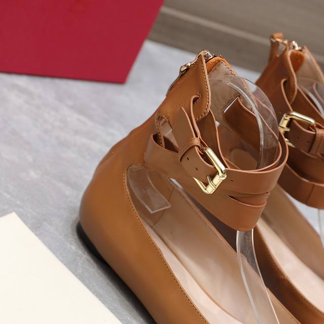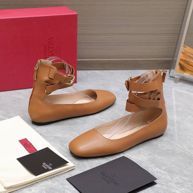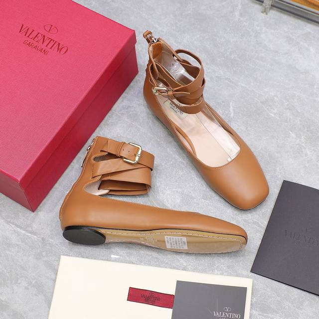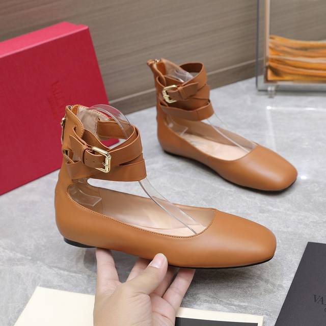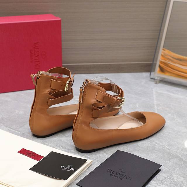 华伦天奴平底后拉链女鞋