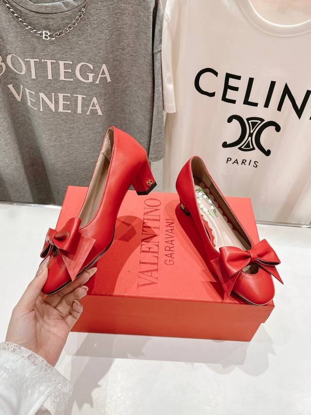 ~New~顶级制作 Valentino 华伦天奴2025Ss官方最新高跟蝴蝶结单鞋时装鞋