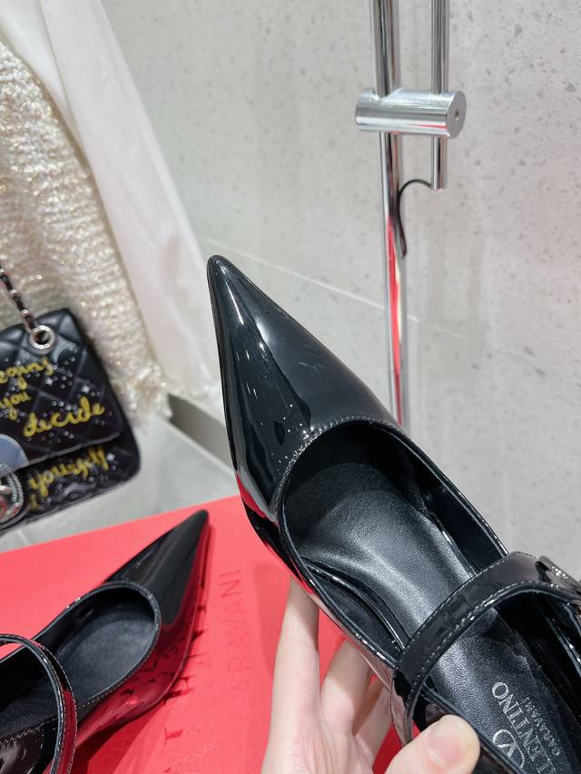Valentino华伦天奴25Ss新款蝴蝶结水钻中跟单鞋高跟鞋粗跟凉鞋 自从换了设计师 华家的风格越来越复古优雅,大蝴蝶结更显俏皮时下流行的圆头 尖头设计,彰显