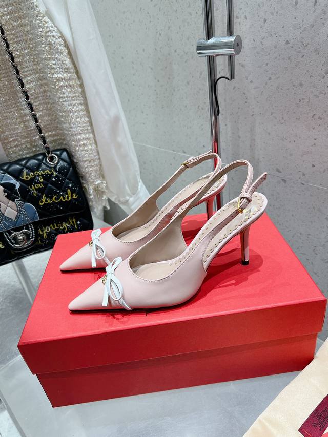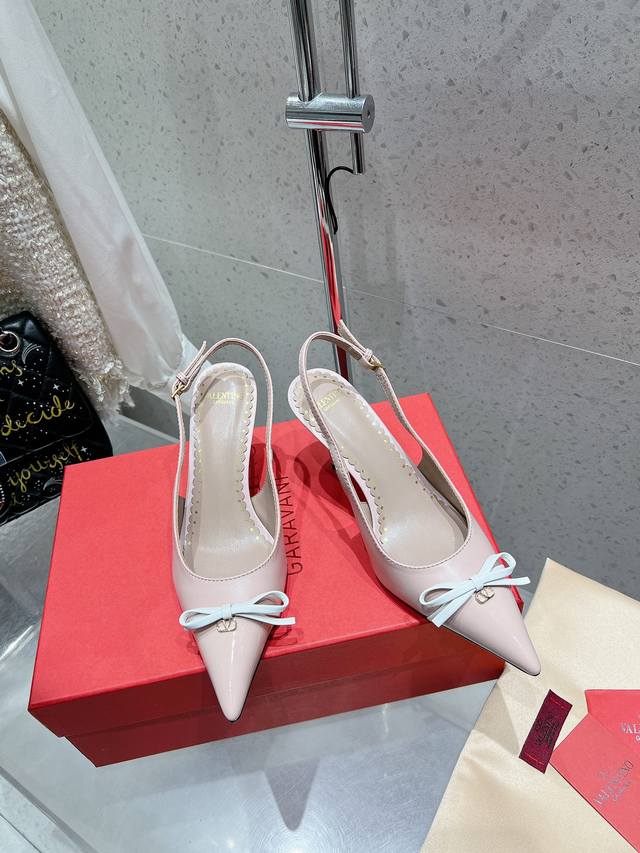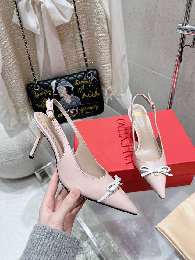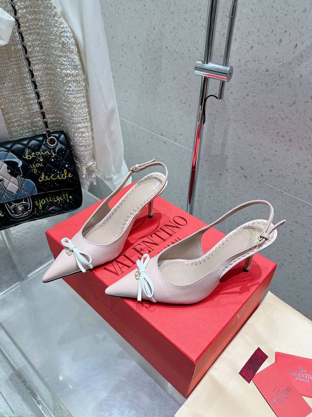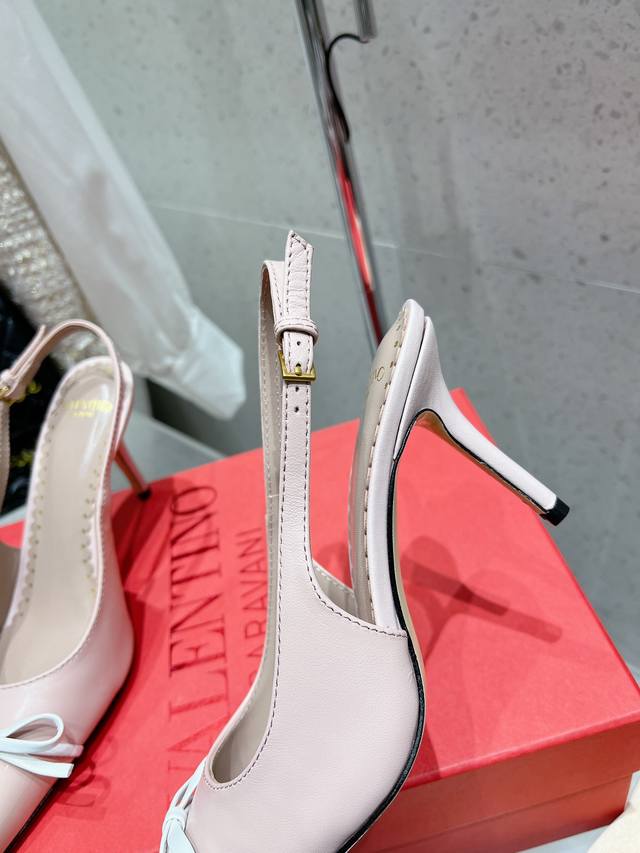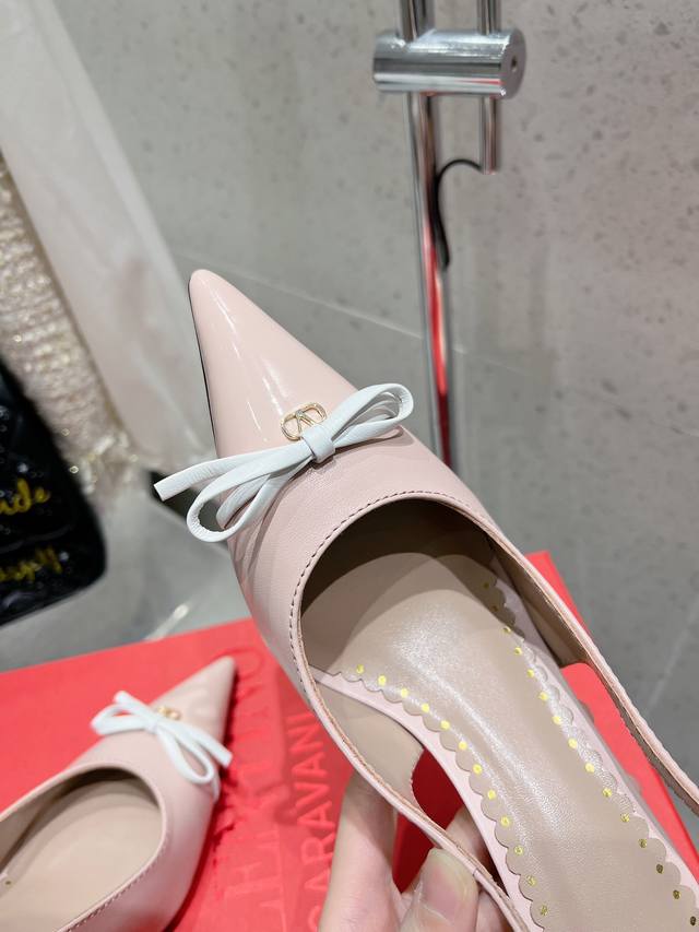 Valentino华伦天奴25Ss新款蝴蝶结水钻中跟单鞋高跟鞋粗跟凉鞋 自从换了设计师 华家的风格越来越复古优雅,大蝴蝶结更显俏皮