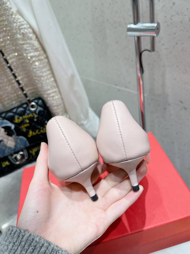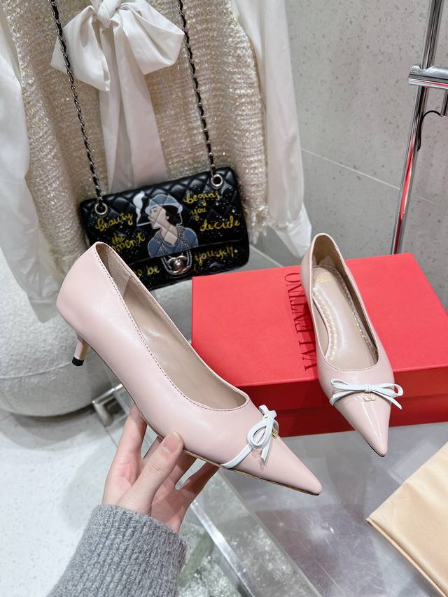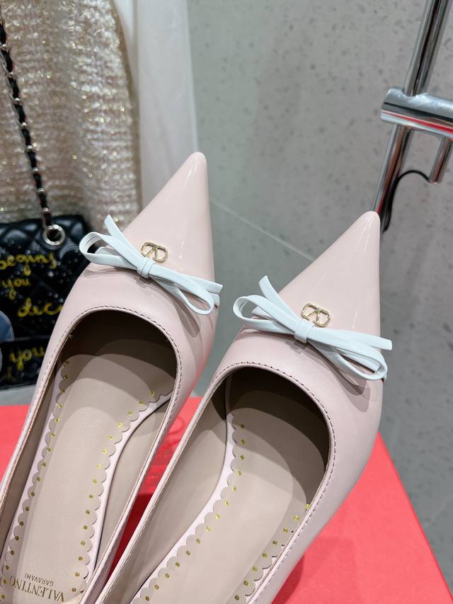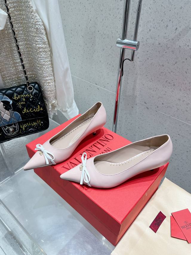 Valentino华伦天奴25Ss新款蝴蝶结水钻中跟单鞋高跟鞋粗跟凉鞋 自从换了设计师 华家的风格越来越复古优雅,大蝴蝶结更显俏皮
