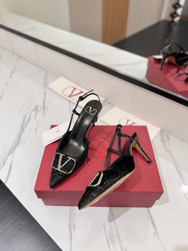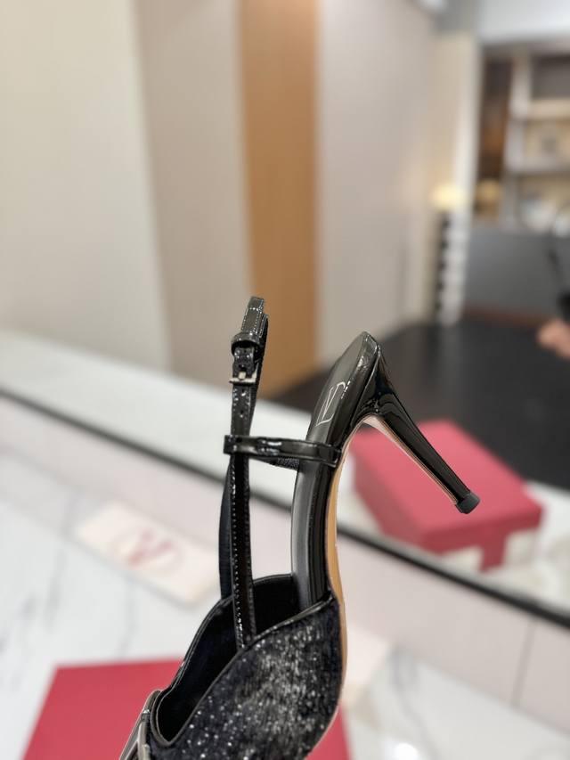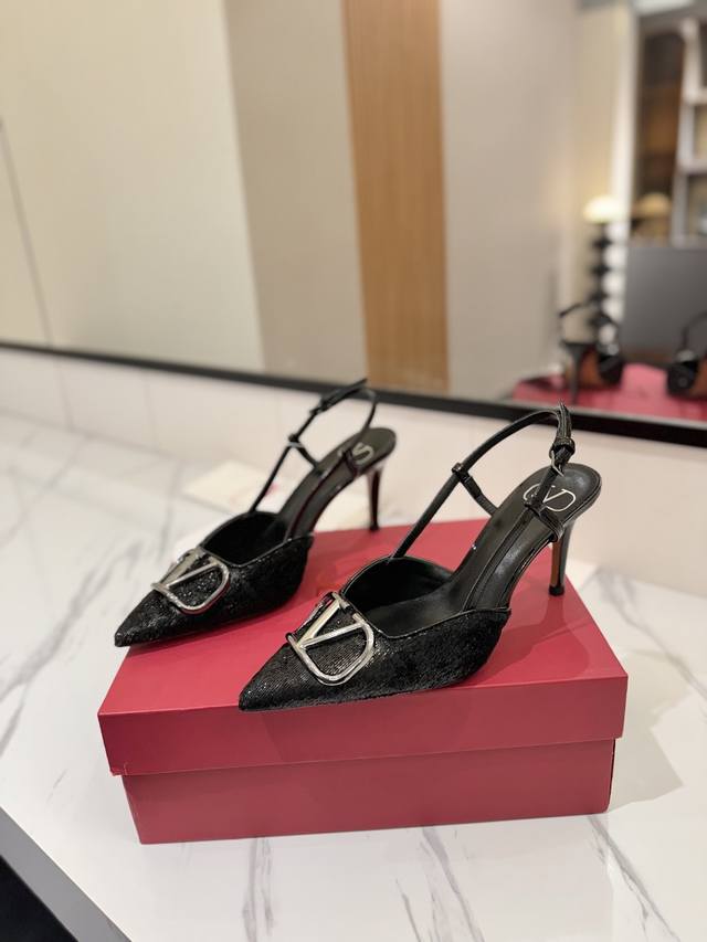 Valentino华伦Vlogo丝绒凉鞋,专柜最新系列 最高版本 按1:1复制 高级感十足的闪高丝绒上脚低调奢华,鞋柜必须要有的一双美鞋