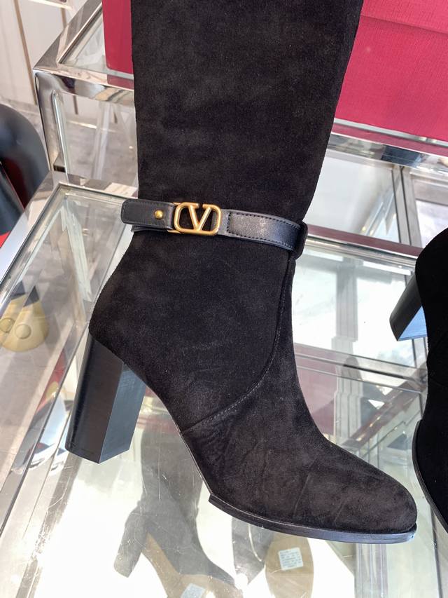 Valentino 华伦天奴24Ss 秋冬新款 圆头 V扣 长靴