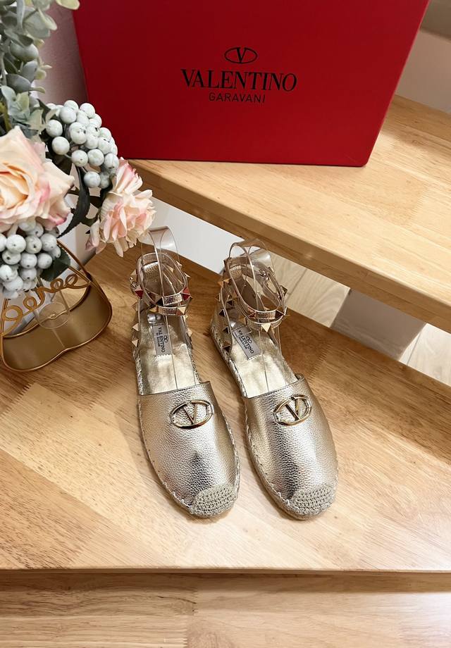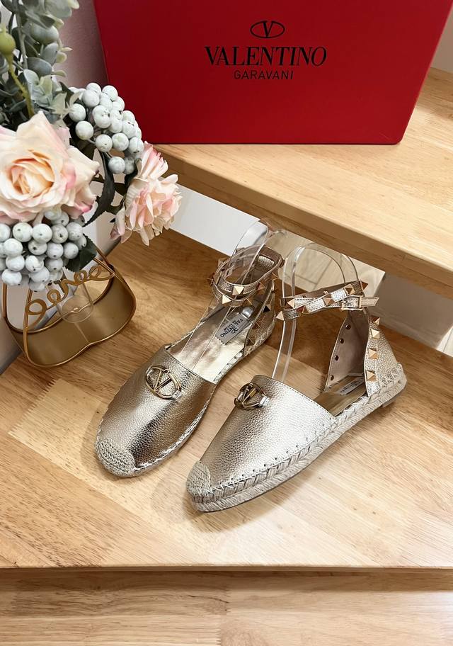 Valentino Garavani 荔枝牛皮中空渔夫鞋凉鞋 - 金属效果工艺处理铆钉装饰 - 草编鞋麻底 - 露趾凉鞋 - 平底凉鞋 - 意大利制造 -36-