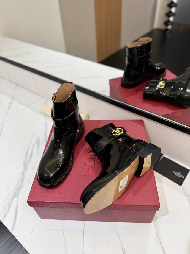Valentino Garavanivl -V专柜最新款骑士小短靴外侧v扣锁版面设计- 顶级版本绝对史上最强货 舒适好穿楦型与专柜一致,优雅气质、 面料 进口牛