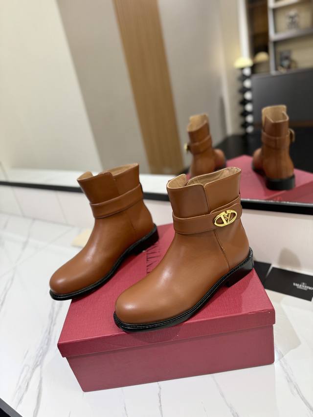 Valentino Garavanivl -V专柜最新款骑士小短靴外侧v扣锁版面设计- 顶级版本绝对史上最强货 舒适好穿楦型与专柜一致,优雅气质、 面料 进口牛