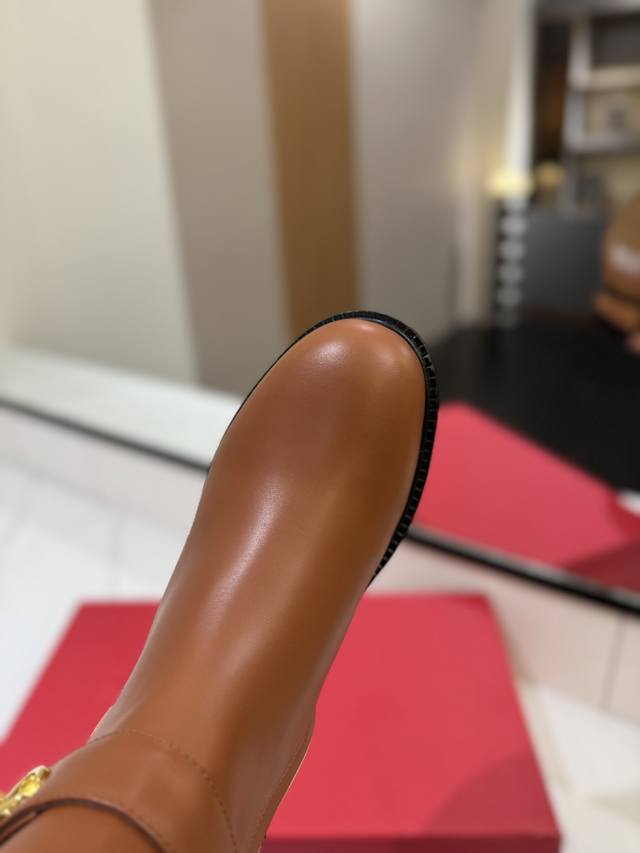 Valentino Garavanivl -V专柜最新款骑士战靴外侧v扣锁版面设计-内侧拉链开合 顶级版本绝对史上最强货 舒适好穿楦型与专柜一致,优雅气质、 面