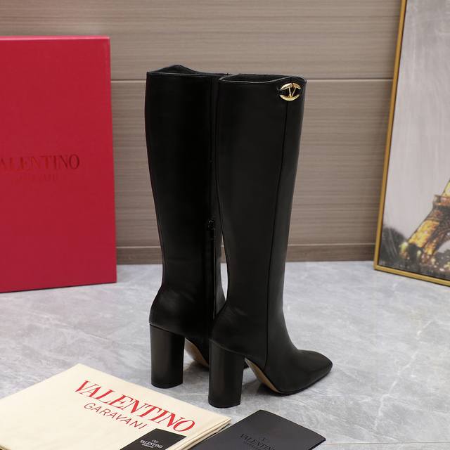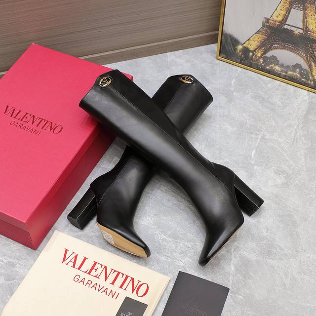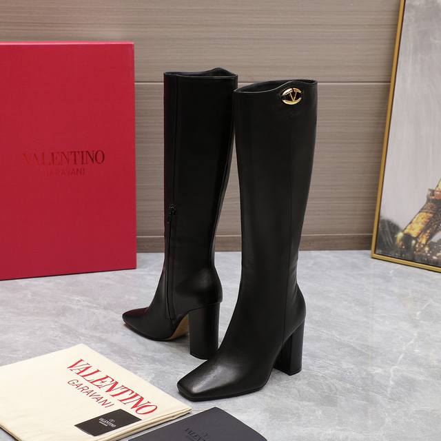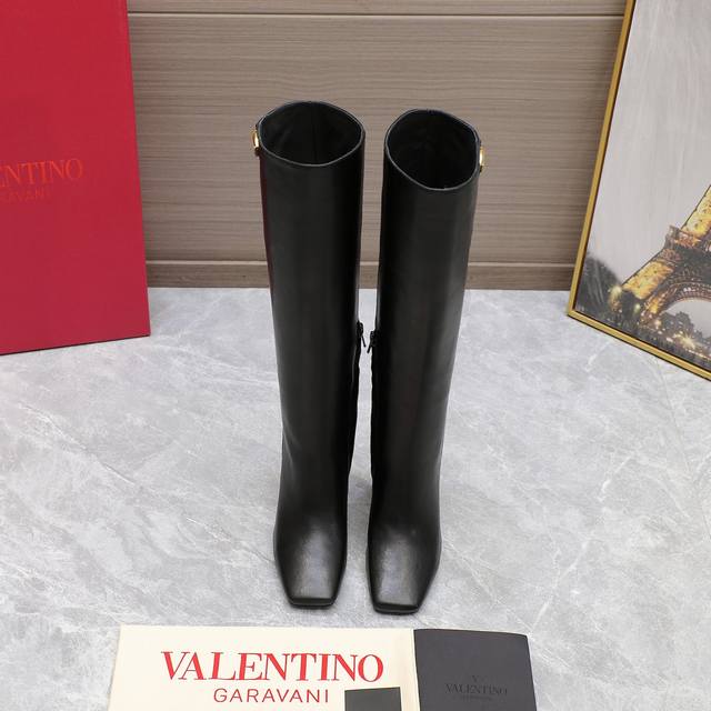 代购级 24Ss 秋冬新款 华伦天奴valentino 方头 V扣骑士靴 华伦天奴专柜最新款 顶级版本 绝对史上最强货 欢迎对比大底采用意大利进口真皮大底 舒适